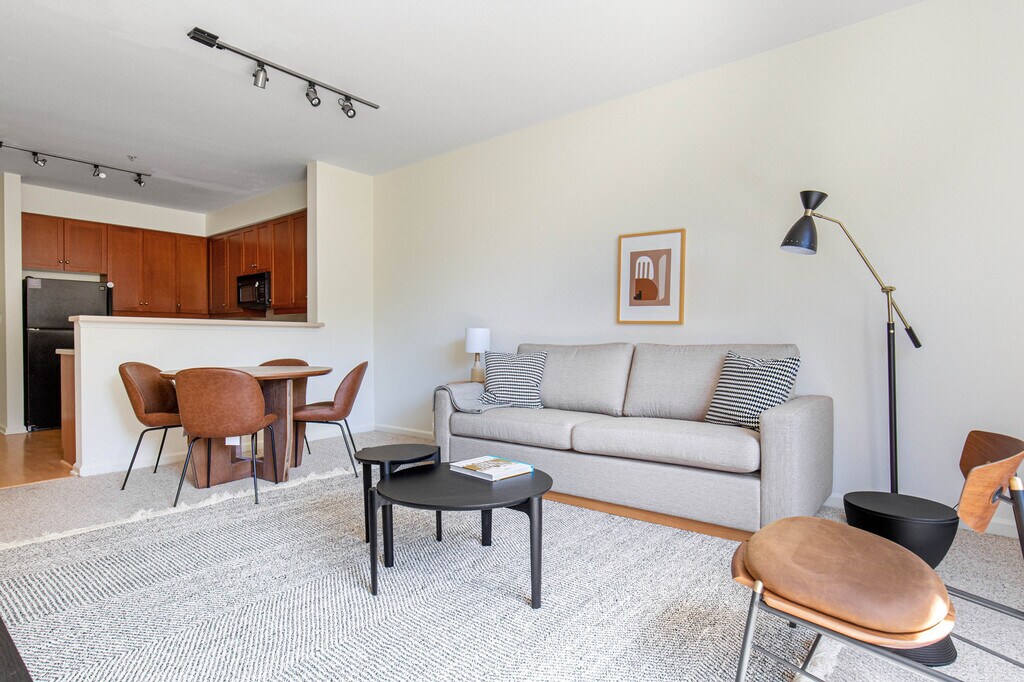 Similar space, but different These photos are of a similar space and style to this apartment. They’re intended to give you a sense of Blueground’s design style. Exact furniture and layout will be different. Be the first to rent! Feel at home wherever you choose to live with Blueground. You’ll love this sophisticated Diridon furnished one bedroom apartment with its modern decor, fully equipped kitchen, and lovely living room. Ideally located, you’re close to all the best that San Jose has to offer! (ID #SFO2061) The advertised rate of $2,850/month is the lowest available price, based on a 2 month(s) and 29 day(s) stay with a move-in date of October 30, 2025. If you’re looking for a 1-year stay, the rate is $3,370/month. Rates vary depending on the duration of stay, season, and other parameters. For exact pricing and additional pricing components, please visit our website and enter your desired move-in and move-out dates. The rate is applicable when billed upfront; it can be higher if billed in multiple payments. Brokers are welcome to reach out. Were you looking for an unfurnished lease? Try Blueground instead and upgrade from unfurnished to furnished living: - Furnished at rates comparable to unfurnished - No setup or furniture costs - save thousands - Move-in ready - save time, just bring your suitcase Designed with you in mind Thoughtfully designed with bespoke finishes, modern furnishings, and a fully equipped kitchen, you’ll enjoy that “I’m home” feeling with this Blueground apartment. Whether you’re lounging in your beautiful living room streaming the latest and greatest entertainment on the smart TV or premium wireless speaker, or getting some well-earned rest on the superior quality mattress with luxury linens, you’ll fall in love with everything this Diridon apartment has to offer. This apartment also offers in-apartment laundry. Amenities Building amenities unique to this one bedroom apartment include an on-site: - Dryer - Elevator - Swimming pool - Washing machine - Lounge - Parking - Pets allowed Arrival and ongoing support The entire apartment is yours to enjoy! Throughout your stay, you’ll have access to our Client Experience team through the Blueground App. You can schedule additional cleanings, submit maintenance requests, and view our neighborhood recommendations with just a few taps. We’ll share all details upon confirmation of your stay. Other things to note Building amenities may have an extra cost. Photos are from a similar property. This Blueground apartment has flexible lease options, allowing you to book it for one month, a year, or more. Pets are welcome, though weight limits and breed restrictions apply and may incur fees. Parking is offered based on availability and is subject to a fee.
