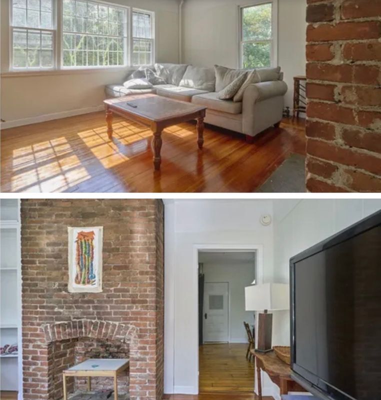 This farmhouse sits on an acre and a half of level land. Inside, hardwood floors run throughout, accompanied by wide trim and clean moldings that reflect the home's simple craftsmanship. On the main floor, you'll find a bright kitchen that opens to a spacious living area, where tall windows fill the rooms with natural light. Upstairs, you'll find bedrooms that continue the hardwood floors and feature details such as exposed brick, wide trim, and tall windows. Outside, the open yard offers a mix of sun and shade, suitable for gardens, projects, or quiet outdoor time. The property is located just minutes from downtown Norwich, Mohegan Park, and local shops, museums, and restaurants, combining privacy with convenient access to amenities