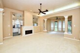 This beautifully updated home features an open-concept layout with high ceilings and a versatile front room perfect for an office, formal dining, or flex space. The kitchen boasts newly remodeled marble countertops. The primary suite includes a walk-in closet, double vanity, soaking tub, and separate shower. Bathrooms also feature elegant marble counters. Enjoy serene lake views and direct access to a jogging trail from the backyard. Located in a community with HOA amenities, including scenic lakefronts and maintained jogging paths.
