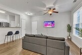 Stay in style in the eclectic city with this classy 734-square-foot 1-bedroom apartment featuring two plush full beds for your comfort. Enjoy lightning-fast Wi-Fi, a height-adjustable standing desk, a fully equipped kitchen, and other luxurious amenities specially designed for longer stays. Step out to a lively neighborhood, close to restaurants, cafés, bars, and shops. Begin your day with a perfectly brewed cup of tea or instant coffee from the convenient coffee station in your upscale kitchen. Whether you're here for business or leisure, this space provides the perfect balance of comfort and convenience. With vibrant restaurants just minutes away, explore the culinary scene in Cary each night. After a long day, your well-equipped kitchen and elegant dining table are ready to provide a 5-star dining experience right at home. This space serves as the perfect home base for work, relaxation, and entertainment. Free on-site parking is available on a first-come, first-served basis. Public transit and ride shares are also accessible, providing quick access to Uber, Lyft, and local transit. We welcome up to two pets per reservation, each weighing under 35 lbs, with a fee of $49 per pet for stays of 1–6 nights. Additional charges apply for longer stays, and a one-time fee applies for larger pets. Bringing undisclosed pets into the unit may result in a minimum $500 fine and cancellation of your stay without refund. Situated in a vibrant neighborhood, this property places you within minutes of top attractions, dining, and nightlife. Enjoy easy access to Duke University, Sarah P. Duke Gardens, Nasher Museum of Art, Durham Performing Arts Center, American Tobacco Campus, Durham Bulls Athletic Park, Eno River State Park, Brightleaf Square, 21c Museum Hotel, and Hayti Heritage Center. Quiet hours are strictly enforced from 8:00 PM to 8:00 AM. Noise levels exceeding 80 decibels for more than 10 consecutive minutes will result in a $2,500 fine, immediate removal from the property, and cancellation of your reservation without refund. Smoking is strictly prohibited anywhere on the premises. Tampering with smoke detectors or any in-unit devices will incur a $2,500 fine and immediate removal without refund. Unauthorized guests will result in a $500 fine per person, immediate removal, and cancellation of the reservation without refund. All guests must complete identity verification prior to check-in. The primary guest must be at least 21 years old. Access details will be shared 24 hours prior to check-in after verification is completed. Guests are responsible for disposing of all trash and recycling in designated dumpsters. Unauthorized late checkouts are considered trespassing and may result in additional charges or police involvement. Includes a dedicated work station with a standing desk, perfect for remote work, and fast Wi-Fi (300+ Mbps) ideal for streaming, remote work, or video calls. [SI]