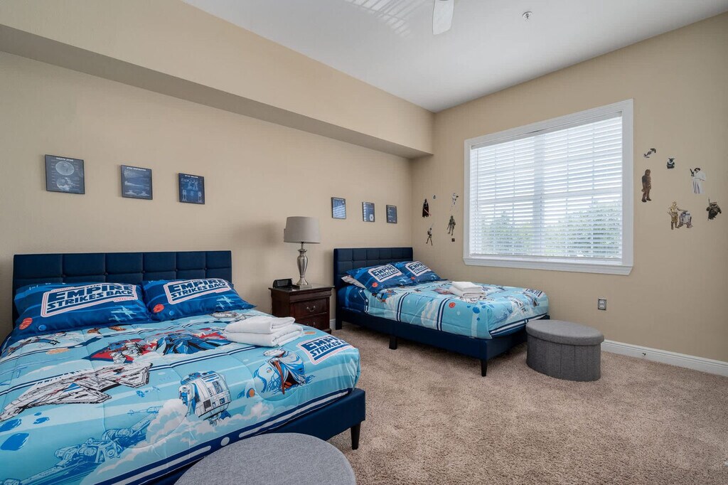 Experience luxury and comfort in this stunning 3-bedroom, 2-bathroom condo overlooking the Reunion Golf Course. This fully furnished unit offers extra living space, spacious baths, and an abundance of natural light. Enjoy the furnished balconies, stainless steel appliances, and convenient storage for golf clubs, making you feel at home in every moment. The condo features three spacious bedrooms, two bathrooms, and a large living area. The full kitchen is equipped with stainless steel appliances, and there's a free washer and dryer for your convenience. Relax on the covered balcony with views of the golf course. Parking is available for up to two vehicles in the parking lot. We welcome one house-trained dog with prior approval and a pet fee, subject to a security deposit. Parking passes are provided by the gate security guard upon entry. Located in the luxurious gated community of Reunion Resort, you'll feel right at home with 24-hour security. The resort offers a variety of dining options and is close to attractions like Universal Studios (20 miles), SeaWorld (15 miles), and Magic Kingdom (8 miles). Explore nearby alligator farms, airboat rides, and water parks for endless entertainment. Self check-in and check-out are available. Check-out time is 10 AM, and late check-outs may incur a fee of up to $300. The home is professionally cleaned and sanitized between guests. Quiet hours are from 10 PM to 8 AM. No smoking or drugs are allowed on the property. The home is not baby-proofed, and no third-party bookings are allowed. Only the number of guests indicated on the reservation may stay overnight. Please respect the neighborhood and keep noise to a minimum during quiet hours. Fireworks and firearms are prohibited on the property. Report any damages immediately. The condo is equipped with Wi-Fi, making it remote work-friendly.