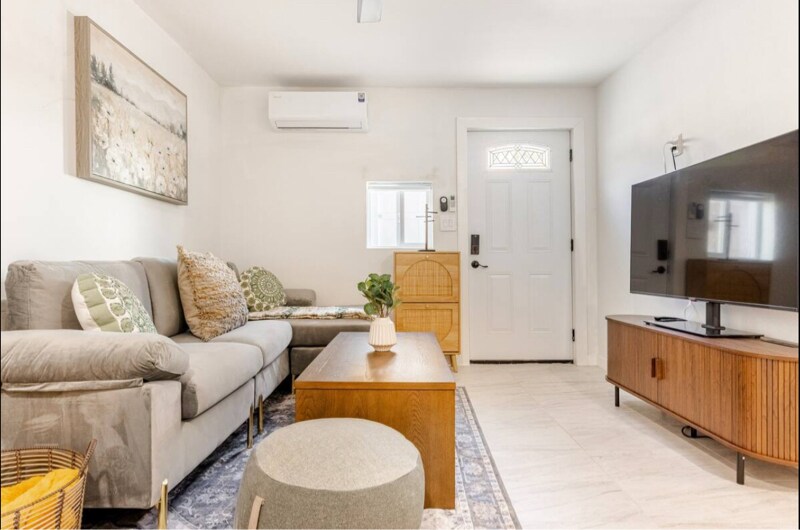 Property Id: 2171213 Our charming home is tucked away in a quiet cul-de-sac of single-family homes but has easy access to major freeways like Hwy 91 and I-5. It's just minutes from major hospitals, shops, restaurants, and attractions (2 minutes from Knott's Berry Farm, Porto's Bakery, The Source Shopping Center, Buena Park Downtown, and 9 minutes from Disney Land). House is fully equipped with all amenities for traveling professionals and extended stay. Available for 30+ days rental only. What amenities does this space have to offer? -Keyless entry -All utilities included -High-speed internet -Free Street Parking -Living Room with Smart TV -Fully stocked kitchen: gas stove, oven, full-sized fridge, coffee maker, blender, rice cooker, cookware, dinnerware, utensils -Queen bed set, full-size closet, and blackout curtains -Washer/dryer in unit -Extra linens and towels -Small backyard with outdoor sitting