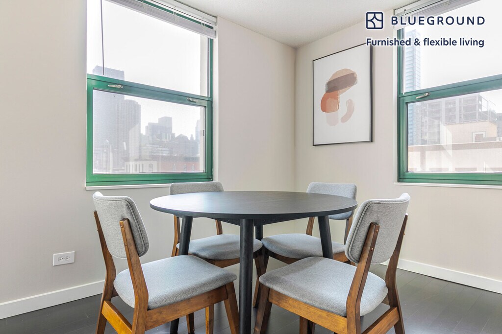 Show up and start living from day one in Chicago with this cozy two bedroom Blueground apartment. You’ll love coming home to this thoughtfully furnished, beautifully designed, and fully equipped Near North home. (ID #CHI1269) The advertised rate of $2,300/month is the lowest available price, based on a 2 month(s) and 14 day(s) stay with a move-in date of December 7, 2025. If you’re looking for a 1-year stay, the rate is $3,740/month. Rates vary depending on the duration of stay, season, and other parameters. For exact pricing and additional pricing components, please visit our website and enter your desired move-in and move-out dates. The rate is applicable when billed upfront; it can be higher if billed in multiple payments. Brokers are welcome to reach out. Were you looking for an unfurnished lease? Try Blueground instead and upgrade from unfurnished to furnished living: - Furnished at rates comparable to unfurnished - No setup or furniture costs - save thousands - Move-in ready - save time, just bring your suitcase Designed with you in mind As with any Blueground apartment, you’ll find a thoughtfully designed space complete with beautiful furniture and a fully equipped kitchen in this two bedroom property. And, thanks to our superior quality mattresses, luxury linens, and towels, you can relax knowing you’ll always feel comfortably at home. When you’re ready for some fun, you can take in the Chicago vibes or bring the entertainment to you with the premium wireless speaker or smart TV. This apartment also offers in-apartment laundry. Sleeping arrangements Queen Bed, 63in/160cm Queen Bed, 63in/160cm Amenities Building amenities unique to this two bedroom apartment include an on-site: - BBQ Area - Dryer - Elevator - Swimming pool - Washing machine - Lounge - Pets allowed - Sauna Arrival and ongoing support The entire apartment is yours to enjoy! Throughout your stay, you’ll have access to our Client Experience team through the Blueground App. You can schedule additional cleanings, submit maintenance requests, and view our neighborhood recommendations with just a few taps. We’ll share all details upon confirmation of your stay. Other things to note Building amenities may have an extra cost. This Blueground apartment has flexible lease options, allowing you to book it for one month, a year, or more. Pets are welcome, though weight limits and breed restrictions apply and may incur fees. We take great pride in ensuring every photo displayed is shot in our own units with our actual furnishings. That said, we regularly refresh our decor and furniture arrangement, which may differ from what’s pictured. Also note - This apartment is located on a narrow street - Blueground cannot provide cots or additional beds for this apartment - This is a guarded building equipped with a doorman/concierge at all times