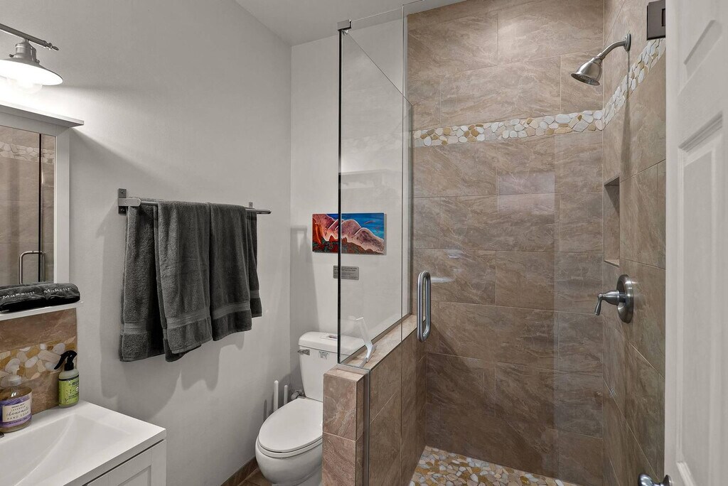 Feel at home in this comfortable 1-bedroom suite located in the Village of Oak Creek, Sedona, perfect for singles or couples. This suite features a queen-size bed, a nicely equipped kitchenette, a private bathroom with a shower, and air conditioning. Guests also have access to a landscaped private oasis with a shared hot tub, cold plunge pool, and numerous lounge and seating areas. For your entertainment needs, there is a 55-inch flat-panel TV with Apple TV. Guests can enjoy the amenities of the 1-bedroom suite, accessible via the garage, including the laundry room, hot tub, plunge pool, backyard lounge areas, and parking for up to two cars. Access to the outdoor cooking area, barbecue, smoker, fire pit, and outdoor dining area is restricted for guests staying at the Red Canyon Retreat. Ideally located in the Village of Oak Creek, the suite is right at the doorstep of Wild Horse Mesa (great hike) and minutes away from two golf courses. Trailheads for Bell Rock and Slim Shady, offering a network of walking, hiking, and biking trails, are also nearby. Uptown Sedona is just 6 miles away. Explore the lively community of the Village of Oak Creek, with its great restaurants, coffee spots, and bike shops, serving as the southern gateway to Sedona and putting you close to top trails like Hi Line, Templeton, Llama, Bell Rock Pathway, and Rabbit Ear. A 5% credit card processing fee will be charged if you pay by credit card. [SI]