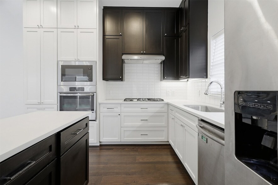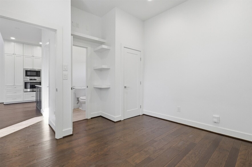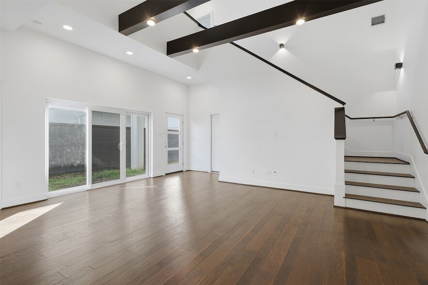 Welcome to the desirable neighborhood of Spring Branch located conveniently close to Memorial City, the Galleria, and Downtown Houston. This is a unique and modern townhome. Full of charm, it features stainless steel appliances, hardwood floors, and vaulted ceilings. All bedrooms, including the flex room downstairs, have their own bathroom and plenty of closet space. The master bedroom is oversize and comes complete with ensuite bath and large closet. The shower and tub in the master bath are simply stunning. The kitchen is open to the living room with great views from the stairway and hallway above. The two-car garage has plenty of storage and right outside the front door is a covered patio for comfortable outdoor relaxation.