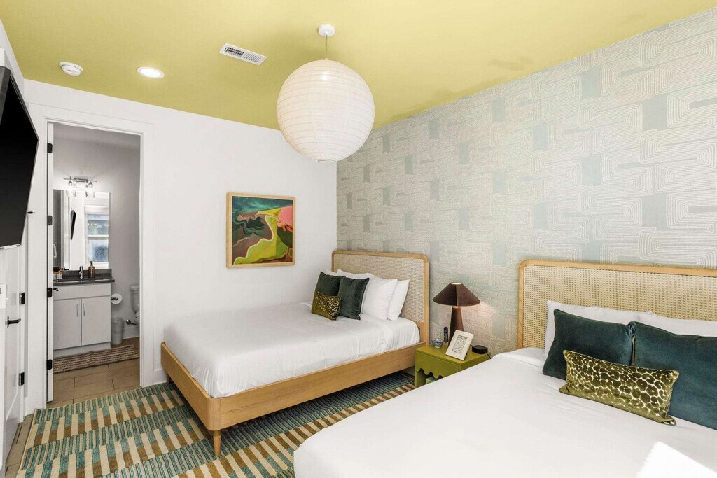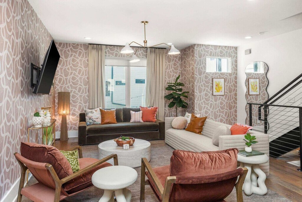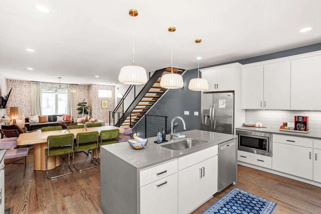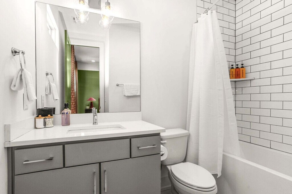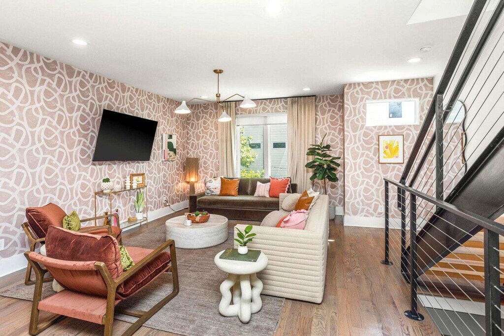 Experience the best of Nashville from this spacious and centrally located house! Feel at home in this property that offers four levels of comfort and privacy. This home comfortably accommodates up to 12 guests, featuring bedrooms strategically placed on levels 1, 3, and 4, each boasting its own private en-suite bathroom. The second level serves as the heart of the home, showcasing an open-concept kitchen, dining area, and living space that extends to a balcony. A convenient half bath is on this level. The fourth-level bedroom doubles as a second living area, complete with ample seating and a private patio accessible via a modern garage door. Enjoy two full living areas, three outdoor spaces (including a balcony off the third-level bedroom), and the convenience of a private bathroom for every bedroom. The gourmet, fully stocked kitchen is perfect for preparing meals. Each bedroom has a Smart TV. Parking is free in the 2-car garage. Dogs are welcome, up to two under 50lbs. This home is in a prime location just minutes from Broadway and all the major attractions, situated on 8th Avenue South and adjacent to the Waverly Neighborhood. Walk to Hattie B's, Zanies, Baked on 8th, and other local restaurants, cafes, and shops. It's 9 minutes from Broadway and Bridgestone Arena, 7 minutes from The Gulch, 5 minutes from Geodis Park, 8 minutes from Nissan Stadium, 4 minutes from 12 South, 6 minutes from Vanderbilt, and 5 minutes from Belmont. Ubers and Lyfts are readily available. Smoking is not allowed inside, or within 25 feet of the property. A $500 fee will apply if smoke of any kind is detected in the home. No glitter or confetti decorations are allowed, and no decorations on the wallpaper. Please remove all decorations before departure. Quiet hours are observed, and outdoor noise levels should be kept down. If anything breaks or gets damaged during your stay, please provide a heads-up. The cleaning fee does not cover excessive mess, so please leave the space in good condition and follow the check-out instructions. Early check-ins or late check-outs must be pre-arranged. Dogs must be leashed when outside, and guests must pick up after their dog and use the provided dog bag station. Dogs are not allowed on furniture or beds and should not be left unattended. Dogs need to be crated if left alone in the house, must be housebroken, and guests should use designated potty areas. Guests should ensure their dog doesn't cause excessive noise. Any non pre-arranged late check-outs will result in withholding of deposit. Registration Number: [SI]