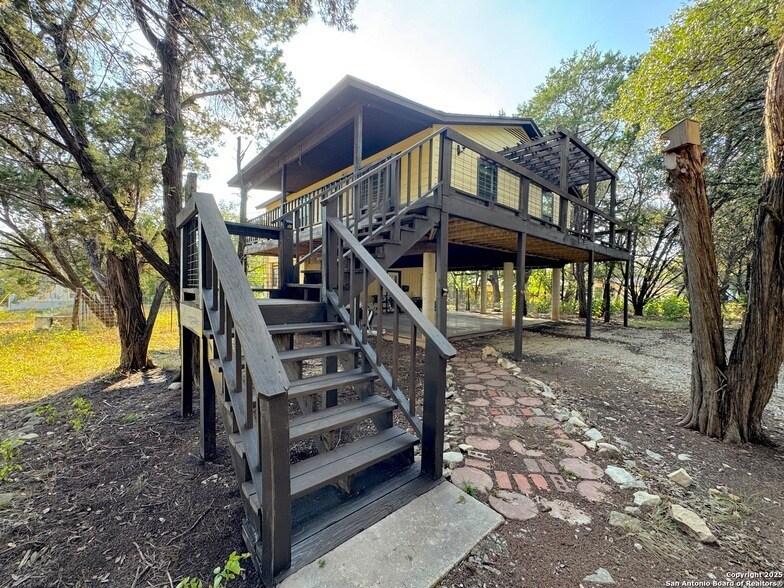 Professional & Polished, Unique Hill Country Rental - Treehouse Style Living! This distinctive 3-bedroom, 2-bath home offers the feel of a private treehouse, with the entire residence elevated on the second floor and surrounded by mature trees. The spacious covered deck provides a serene setting for enjoying wildlife, from songbirds to deer. Highlights include: Move-in ready and well-maintained, Fenced backyard for added privacy. A truly one-of-a-kind rental that combines comfort, privacy, and natural beauty. Come see this cutie today.