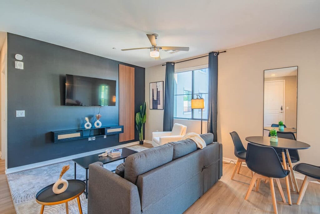 Relax and unwind in this stylish 2-bedroom, 2-bathroom apartment located in the heart of Phoenix. This vibrant area is home to numerous award-winning restaurants, shops, historic landmarks, and attractions. From this prime location, exploring Phoenix and the surrounding region is easy and convenient. And when you're ready to wind down, simply retreat to the comfortable apartment to relax. Come relax in this 2-bedroom, 2-bathroom unit. The living space features an innovative open-concept design that blends the living and dining areas with the kitchen, creating a modern and sleek living experience. The living room is ideal for relaxing and enjoying the company of friends and family while watching a good movie or a show. Stylish interior design with carefully picked amenities and decorations make up for this lovely space. The apartment features a fully equipped kitchen in which you can easily prepare your favorite, delicious meals. Its space and modern amenities are much more than you would expect from a 2-bedroom, 2-bathroom apartment. Only 1 parking spot included. There may be additional parking in garages or street nearby. Details will be given during check-in instructions. Pets are allowed depending on size or if they are service animals. An additional cleaning fee is required per pet: 1-7 Nights: additional $25 per night, 8-29 Nights: additional $200, 30+ Nights: additional $300. There is a 2 pet maximum and only cats and dogs are allowed. If you are found to have brought pets without prior notification, there will be a $500 fee. Nestled in a vibrant and welcoming neighborhood, this charming property is your perfect base for exploring all that Phoenix has to offer. You’ll find a blend of modern amenities and local character, with tree-lined streets and friendly neighbors creating a warm atmosphere. Enjoy a variety of nearby dining options, from cozy cafés to trendy restaurants serving diverse cuisines. Take advantage of the beautiful Arizona weather with parks and walking trails just a short stroll away. The nearby Papago Park offers stunning hikes and scenic views. Explore local art galleries, museums, and the iconic Desert Botanical Garden, showcasing the unique desert flora. Discover unique boutiques and entertainment venues in the nearby Arcadia district, perfect for a leisurely afternoon. Quiet hours are between 10pm and 8am everyday. If there are noise complaints or any violation of this rule, it may result in cancellation of booking and removal from property without refund. No parties or events or gatherings are allowed. There are cameras above the door and noise detectors in the house. If there is a party of any kind, the police will be called and everyone will be removed from the property with no refunds. No unauthorized guests are allowed at the unit, with a $100 fine per guest if discovered. Smoking is prohibited without exception on this property. This goes for balconies and in or around the building too. If any signs of smoking are found in the unit or on the premises, a fine of $500 will be imposed, no exceptions. The parking pass needs to be printed, and we do not assume any responsibility for parking violations issued to guests who fail to comply with our parking guidelines as detailed in the check-in guide. You may be charged extra for cleaning if the property is left in a state that necessitates additional cleaning. Lost or unreturned keys: $500. Depending on our cleaning schedule, we may be able to accommodate early check-in or check-out at a fee of $25 per hour. You must message us 24 hours beforehand to see if we can authorize this request. Otherwise, for delayed checkout, there will be a $500 late check-out fee, no exceptions. If a lockbox is provided, it must be kept locked at all times. Some stays have auto-locking doors so keep the keys on you. Regular pest control is conducted at the property to ensure a comfortable stay. However, due to seasonal changes and the hot summer heat, you may occasionally notice a few small bugs, such as ants, but not limited to ants. This is completely normal, and we will address any issues promptly. Includes an office desk and chair, and high-speed Wi-Fi. A laptop computer is not included. [SI]