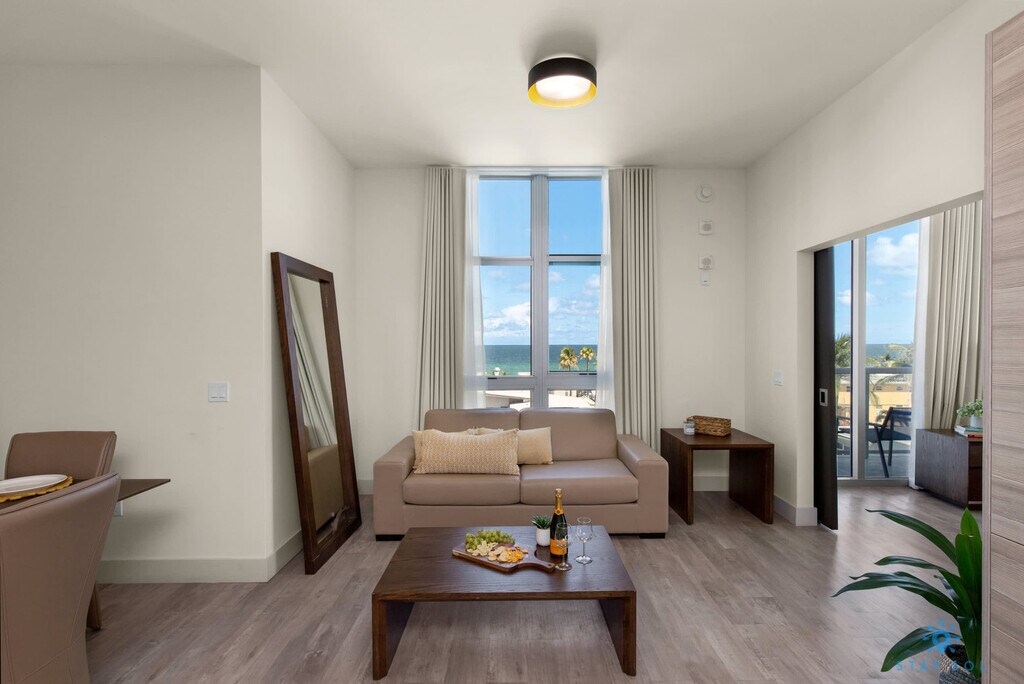 Feel at home in this brand-new 1-bedroom apartment, perfect for a family and friends getaway. Steps from the legendary Hollywood Beach Boardwalk, this apartment offers comfort and state-of-the-art technology. The fully equipped gourmet kitchen features a stainless steel refrigerator/freezer, glass stove, integrated oven, silent dishwasher, integrated microwave, stove, dishes, coffee maker, and toaster. The spacious bedroom includes a hairdryer, electronic safe, iron/ironing board, and TVs. Enjoy ceramic floors, electronic door locks, European-style cabinetry, and modern-style designer fixtures and faucets. Enjoy access to the rooftop infinity pool, hot tub, gym, and sundeck with amazing ocean and Intracoastal views. A pack-n-play crib is available upon request. One pet per unit is welcome for free, but fees may apply for additional pets, with a 25 lbs restriction (doesn’t apply to ESA). Parking is available at the condo for $42 a day, or you can issue a public parking pass for the whole month for $110 plus taxes, which allows you to park on any street or city parking lot (300 Connecticut St). Named one of the best beach footbridges in the United States, the "Broadwalk" has two and a half miles of bars, restaurants, boutiques, and shops. With a small-town feel, Hollywood Beach is full of restaurants and bars that can not be found anywhere else. For a truly local experience, you can not go wrong with The Le Tub Saloon, GG's Waterfront Grill, El Tayta and Taverna Opa. The apartment is 7.72 miles from Fort Lauderdale International Airport (FLL) and 23.8 miles away from Miami International Airport (MIA). Check-in is any time after 4PM and check-out is any time before 11AM. Swimming is at your own risk – no lifeguard on duty. Children must be supervised by a responsible adult at all times. No diving or running is allowed. Please keep all doors closed and the air conditioning on at all times to help prevent condensation and property damage. The public beach and Boardwalk within the City of Hollywood Beach does not allow pets (service animals are still welcome!). [SI]