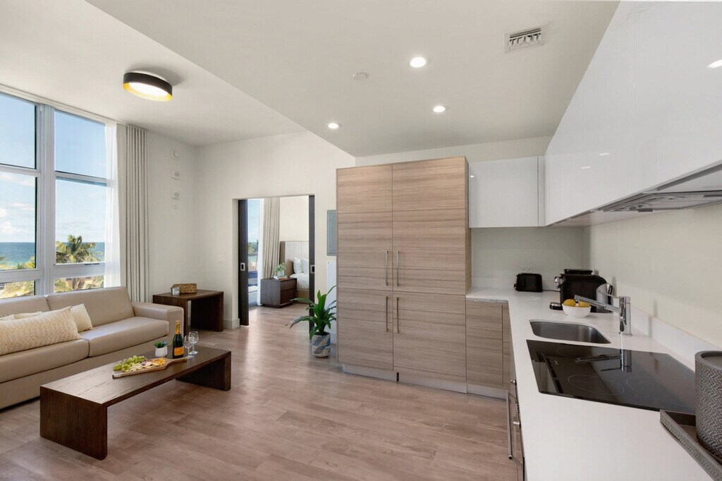 The advertised rate of $3,381/month is the lowest available price, based on a 30 day(s) stay with a move-in date of August 3, 2026. Rates vary depending on the duration of stay, season, and other parameters. For exact pricing and additional pricing components, please visit our website and enter your desired move-in and move-out dates. The rate is applicable when billed upfront; it can be higher if billed in multiple payments. Feel at home in this apartment steps from the Hollywood Broadwalk, with the beach, bars, live music, and great dining all within walking distance. This brand-new apartment blends modern luxury with a warm, inviting feel. The fully furnished living area features ceramic floors, modern décor, a TV, and a full pull-out sofa bed. The gourmet kitchen is fully equipped with stainless steel appliances, including a glass-top stove, integrated oven and microwave, silent dishwasher, coffee maker, toaster, and full dishware. The spacious bedroom includes a king-size bed, TV, electronic safe, iron and ironing board, and a hairdryer. The bathroom is stocked with fresh towels, shampoo, conditioner, and body wash. Enjoy access to a rooftop infinity pool, hot tub, gym, and sun deck. Parking is available at the condo for $42 a day, or you can issue a public parking pass for the whole month for $110 plus taxes, which allows you to park on any street or city parking lot (300 Connecticut St). A pack and play crib is available upon request. One pet per unit is welcome for free, but fees may apply for additional pets, and the condo has a 25 lbs restriction (doesn’t apply to ESA). Named one of the best beach footbridges in the United States by Travel + Leisure magazine, the "Broadwalk" paved with bricks, as the locals affectionately call it, has two and a half miles of bars, restaurants, boutiques, and shops. With a small-town feel, Hollywood Beach is full of restaurants and bars that cannot be found anywhere else. For a truly local experience, you can not go wrong with The Le Tub Saloon, GG's Waterfront Grill, El Tayta and Taverna Opa. Fort Lauderdale International Airport (FLL) is 7.72 miles away and Miami International Airport (MIA) is 23.8 miles away. Swimming is at your own risk, and there is no lifeguard on duty. Children must be supervised by a responsible adult at all times. Keep all doors closed and the air conditioning on at all times to help prevent condensation and property damage. [SI]