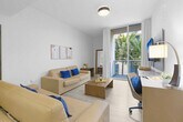 The advertised rate of $3,792/month is the lowest available price, based on a 30 day(s) stay with a move-in date of August 25, 2026. Rates vary depending on the duration of stay, season, and other parameters. For exact pricing and additional pricing components, please visit our website and enter your desired move-in and move-out dates. The rate is applicable when billed upfront; it can be higher if billed in multiple payments. Feel at home in this modern condo resort steps from the Hollywood Broadwalk, overlooking a beautiful beach. This apartment features a master bedroom, a living room, and a second bedroom, plus a balcony. No car is needed. This brand-new apartment offers all the comfort you need. The fully equipped gourmet kitchen offers a stainless steel refrigerator, a microwave, dishes, a coffee maker, and a toaster. The spacious bedroom includes a hairdryer and an iron with ironing board. Enjoy a luxurious stay for 6 guests. The apartment is fully furnished with ceramic floors, electronic door locks, European-style cabinetry, and modern-style designer fixtures and faucets. Parking is not included. You can park your car at the condo for $42 a day, or you can issue a public parking pass for the whole month for $110 plus taxes. With the public parking pass, you can park on any street or city parking lot. A pack-n-play crib is available upon request. One pet per unit is welcome for free; fees may apply for additional pets. The condo has a 25 lbs restriction (doesn’t apply to ESA). Located along North Ocean Drive in the lively community of Hollywood Beach, this apartment puts you at the heart of the action. Within walking distance of the famous Hollywood Beach Broadwalk and the beach, you can enjoy exciting activities such as jet skiing, fishing, sailing, biking, and golf. South Beach and Miami are a short drive away. The Broadwalk has bars, restaurants, boutiques, and shops. Check-in is any time after 4PM, and check-out is any time before 11AM. Swimming is at your own risk; there is no lifeguard on duty. Children must be supervised by a responsible adult at all times. Please keep all doors closed and the air conditioning on at all times to help prevent condensation and property damage. A registration fee of $50 is charged one time only. The public beach and Broadwalk within the City of Hollywood Beach do not allow pets (service animals are still welcome!). [SI]