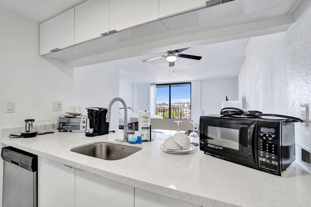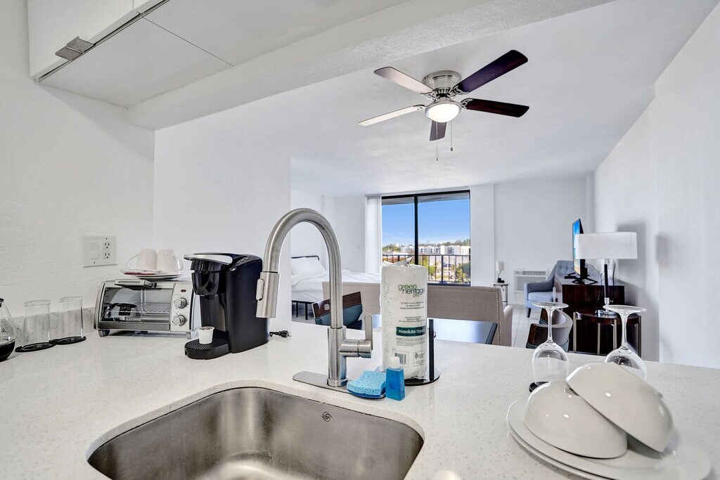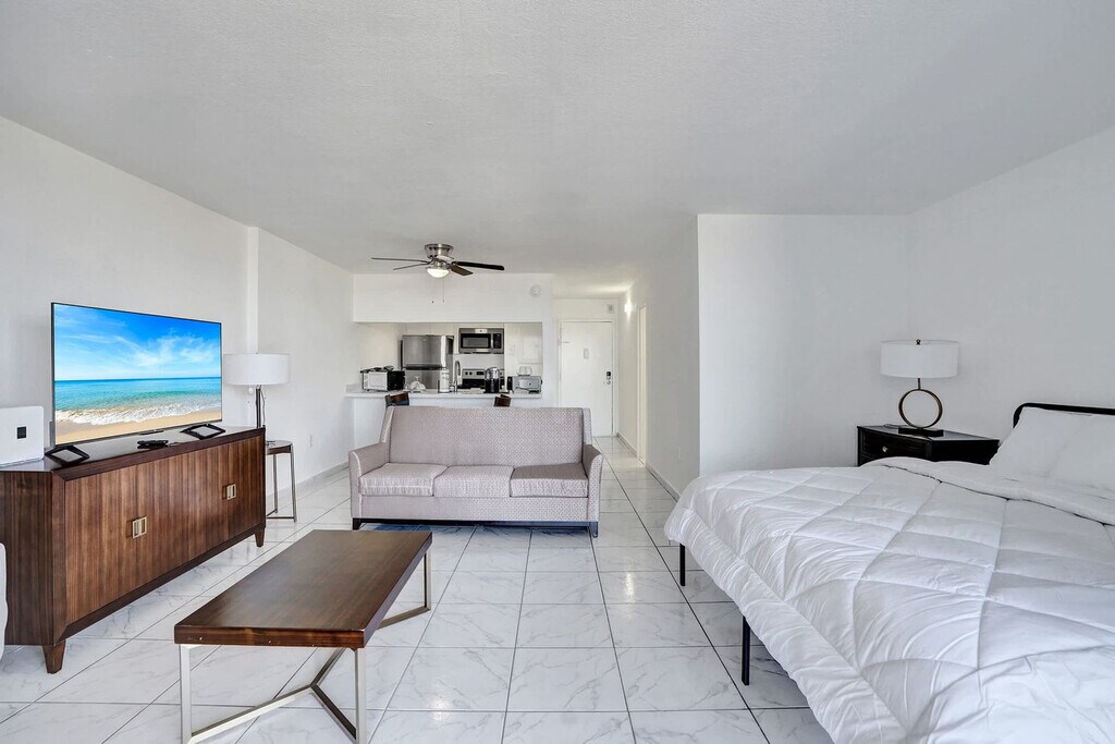 The advertised rate of $2,129/month is the lowest available price, based on a 30 day(s) stay with a move-in date of May 4, 2026. Rates vary depending on the duration of stay, season, and other parameters. For exact pricing and additional pricing components, please visit our website and enter your desired move-in and move-out dates. The rate is applicable when billed upfront; it can be higher if billed in multiple payments. Feel at home in this modern studio in Miami Gardens, designed for comfort and convenience. This bright, open studio features a king-size bed with premium linens, a full bathroom with a soaking tub, a ceiling fan, air conditioning, a Smart TV, free Wi-Fi, fresh towels, basic toiletries, a closet, and storage space. It also has a private entrance. Pets must be approved before booking and are subject to a fee that varies by property. Located in Miami Gardens, this apartment is minutes from Hard Rock Stadium and major highways like I-95 and the Turnpike. Aventura Mall, Sunny Isles Beach, Downtown Miami, and Fort Lauderdale are all within an easy drive. This quiet residential area offers nearby local dining and essentials. No parties, gatherings, or events are allowed, and violations will result in a $500 fine and immediate removal without refund. Quiet hours are from 10:00 PM to 9:00 AM. Any noise complaint may result in a $500 fine and/or cancellation without refund. No indoor smoking is allowed (including cigarettes, vaping, hookah, cigars, or cannabis). Outdoor smoking is permitted at least 10 feet from the building, with doors and windows closed, and violations will result in a $500 fine and may result in immediate cancellation without refund. Do not unplug, move, or tamper with cameras or any connected devices, and violations will result in a $1,000 fine and may result in immediate cancellation without refund. Check-in is at 4:00 PM or later. Guests must send a photo of a valid ID that matches the reservation name via message before receiving check-in instructions and must sign the rental agreement and check-in form before arrival. Please note that the partner will place a $350 refundable authorization hold on a credit or debit card about 72 hours before arrival for security. If damages or policy violations occur, related charges may apply; otherwise, the hold is released after checkout and processed within 5-7 business days. Registration Number: DWE1621389 [SI]