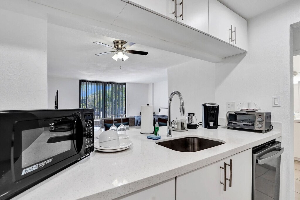 The advertised rate of $2,172/month is the lowest available price, based on a 30 day(s) stay with a move-in date of May 10, 2026. Rates vary depending on the duration of stay, season, and other parameters. For exact pricing and additional pricing components, please visit our website and enter your desired move-in and move-out dates. The rate is applicable when billed upfront; it can be higher if billed in multiple payments. Enjoy a comfortable Miami stay and feel at home in this modern studio featuring a plush king-size bed. This bright, open apartment features a king-size bed with fresh linens, a full bathroom with a soaking tub, a ceiling fan, air conditioning, a smart TV, clean towels and toiletries, a closet, storage space, free Wi-Fi, and a private entrance. Pets must be approved before booking, and a pet fee applies, which varies by property. Guests must agree to clean up pet waste, keep pets leashed or crated when outside, and are responsible for any damage caused by pets. The pet fee must be paid prior to receiving check-in instructions. Early check-in or late check-out may be available upon request for an additional fee, but availability is not guaranteed. Additional consumables and linens are available for a small fee. Parking may vary and is not guaranteed. When provided, one parking spot per reservation is available for standard-size personal vehicles only. No trailers, boats, RVs, campers, mobile homes, 4-wheelers, buses, box trucks, or commercial vehicles are allowed, and there is a $500 fine for violations. Located in Miami Gardens, this apartment is minutes from Hard Rock Stadium and major highways like I-95 and the Turnpike. It's an easy drive to Aventura Mall, Sunny Isles Beach, Downtown Miami, and Fort Lauderdale. The apartment is in a quiet residential area with nearby local dining and essentials. Check-in is at 4:00 PM or later. Guests must send a photo of a valid ID that matches the reservation name and sign the rental agreement and check-in form before arrival. No parties, gatherings, or events are allowed, and there is a $500 fine and immediate removal without refund for violations. Quiet hours are from 10:00 PM to 9:00 AM. Any noise complaint may result in a $500 fine and/or cancellation without refund. No indoor smoking is allowed (includes cigarettes, vaping, hookah, cigars, or cannabis). Outdoor smoking is permitted at least 10 feet from the building, with doors and windows closed. There is a $500 fine for violations, which may result in immediate cancellation without refund. The property is equipped with exterior security cameras for guest safety. Do not unplug, move, or tamper with cameras or any connected devices. There is a $1,000 fine for violations, which may result in immediate cancellation without refund. It is unlawful for a sexual offender or sexual predator to occupy this residence per city ordinance. South Florida’s subtropical climate may occasionally allow geckos or insects inside, despite routine pest control. Guests must request permission before having packages delivered during active reservation dates. USPS mail is not accepted. No luggage storage is available before or after your stay. Please note that the partner will place a $350 refundable authorization hold on a credit or debit card about 72 hours before arrival for security. If damages or policy violations occur, related charges may apply; otherwise, the hold is released after checkout and processed within 5-7 business days. [SI]