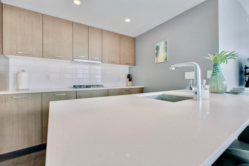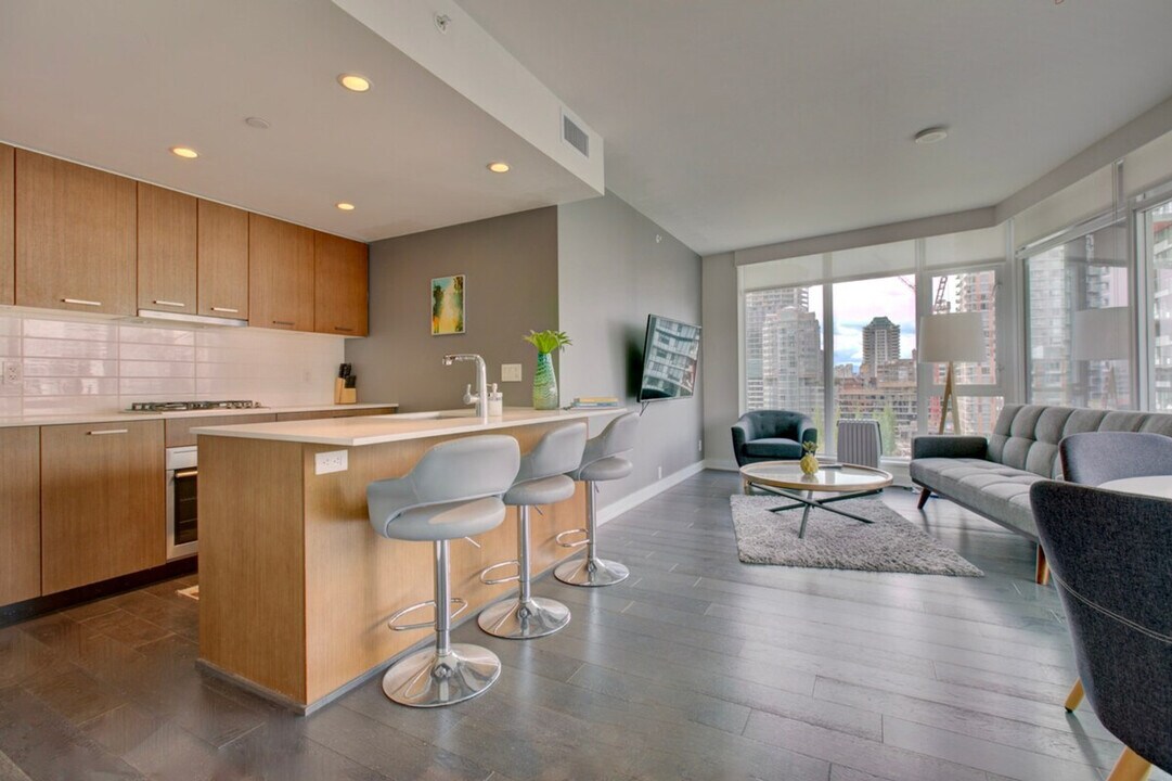 The advertised rate of C$3,878/month is the lowest available price, based on a 30 day(s) stay with a move-in date of October 17, 2026. Rates vary depending on the duration of stay, season, and other parameters. For exact pricing and additional pricing components, please visit our website and enter your desired move-in and move-out dates. The rate is applicable when billed upfront; it can be higher if billed in multiple payments. Feel at home in this classy 1-bedroom condo rental at The Mark in Yaletown Vancouver, featuring high ceilings and hardwood floors. This suite impresses with floor-to-ceiling windows and flawlessly engineered hardwood floors. The contemporary kitchen features top-of-the-line stainless steel appliances and beautifully crafted cabinetry. A breakfast bar is included for quick meals, and the formal dining room seats four at its sleek wooden table. The living room has been tastefully furnished with a high-quality leather couch and lounge chair. The master bedroom includes a comfortable double bed and a large closet. An in-suite washer and dryer are included. Residents have full access to a common room, elevator, guest suite, hot tub, theatre, pool, sauna, stream room, fitness center, A/C, basic cable, internet, and parking. Small pets may be considered. Located in gorgeous Yaletown Vancouver, you will be just steps away from all major city attractions including the seawall, False Creek, grocery stores, and delicious dining destinations. A one-time move-out cleaning fee of $175 and a strata move-in/out fee of $200 apply. [SI]