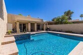 Exquisite Remodel!!! Premium location in this popular patio home community on a quiet street within walking distance to grocery, shopping, dining, Chaparral Lake & miles of lush green walking & biking paths in Camelback Park along Hayden! This is a single level 2 bedroom, 2 bath, Scottsdale Monterey patio home with attached single car garage & front courtyard. Convenient split floor plan. This 1467 sf Model features granite countertops in the kitchen & a breakfast bar overlooking the great room with a wood burning fireplace. The master bedroom has a walk-in closet & access to the covered patio with private pool. Also a few doors down at the community center is the heated community pool and spa.