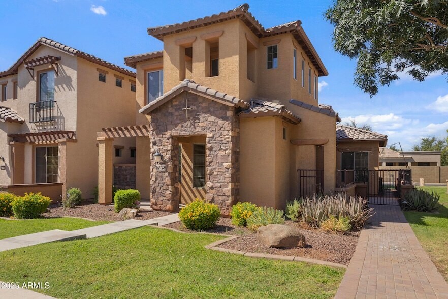 Located in the prestigious Village at Litchfield Park, this 3-bed, 2.5-bath home offers comfort and convenience in one of the West Valley's most desirable communities, known for its top-rated schools and resort-style setting near the Wigwam. Surrounded by 3 award winning golf courses, minutes away from MLB training and Cardinals Stadiums. The floor plan features a first-floor primary suite, half-bath, spacious kitchen with granite tile counters, ample cabinetry, and diagonally laid tile. The primary bath includes dual sinks, soaking tub, separate shower, and large walk-in closet. Upstairs offers two bedrooms with a Jack-and-Jill bath plus a loft with built-in desk. Enjoy a low-maintenance lifestyle with HOA yard care and community pool, spa, parks, and walking paths