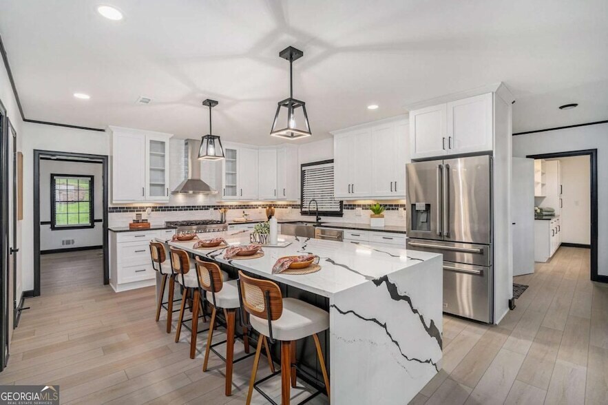 GORGEOUSLY RENOVATED! Live the lake life! This isn't just a home - it's a lifestyle upgrade. Located just minutes from Lake Lanier, Olympic Park, and downtown Gainesville's dining, shopping, and entertainment, this sexy modern renovation blends high-end design with everyday comfort: Open concept living with statement fireplace and feature wall. Chef's kitchen with quartz counters, subway tile, glass-front cabinets, and premium stainless appliances (yes, even a French 4-door fridge!) Oversized primary suite with spa-inspired bath: marble-tiled shower, soaking tub, and custom walk-in closet. Finished basement with second kitchen and full bath = perfect for guests or in-laws. Third-floor flex attic space for gym, studio, or playroom. Brand-new 2-car garage with driveway turnaround + extra storage. Outdoor living goals: 1-acre lot with screened patio, spacious deck, and private, fully privacy-fenced backyard ready for parties, pets, or peace and quiet. Walk to Wessell Park for pickleball, tennis, and more. This home delivers style, features, and location - all in one. Come see why this one's built for your next chapter.