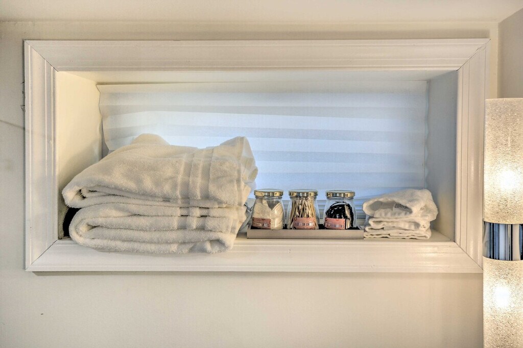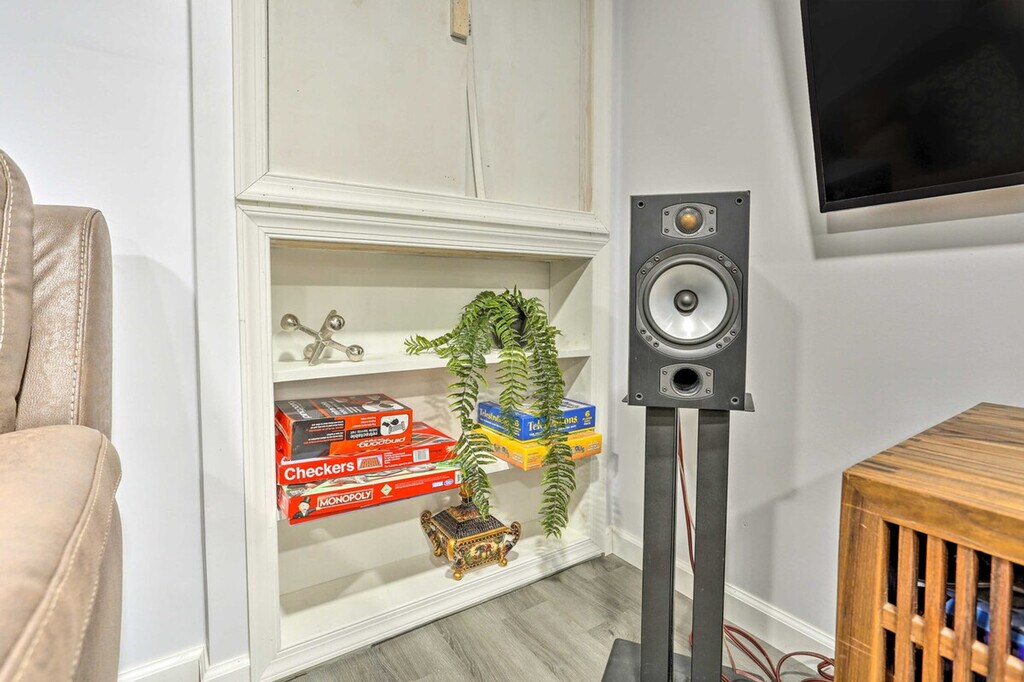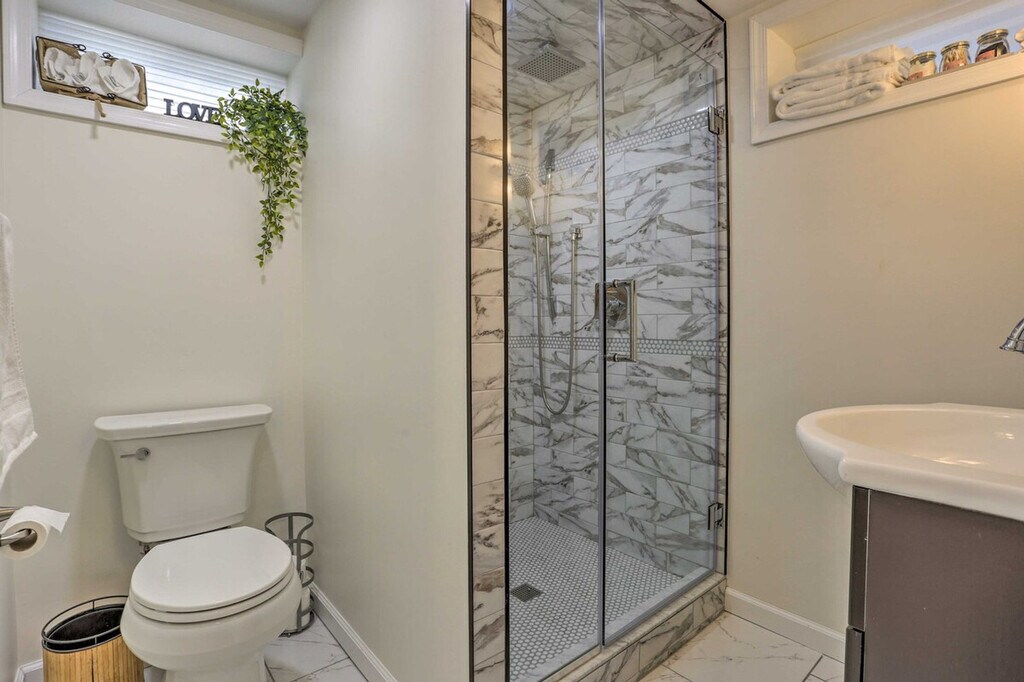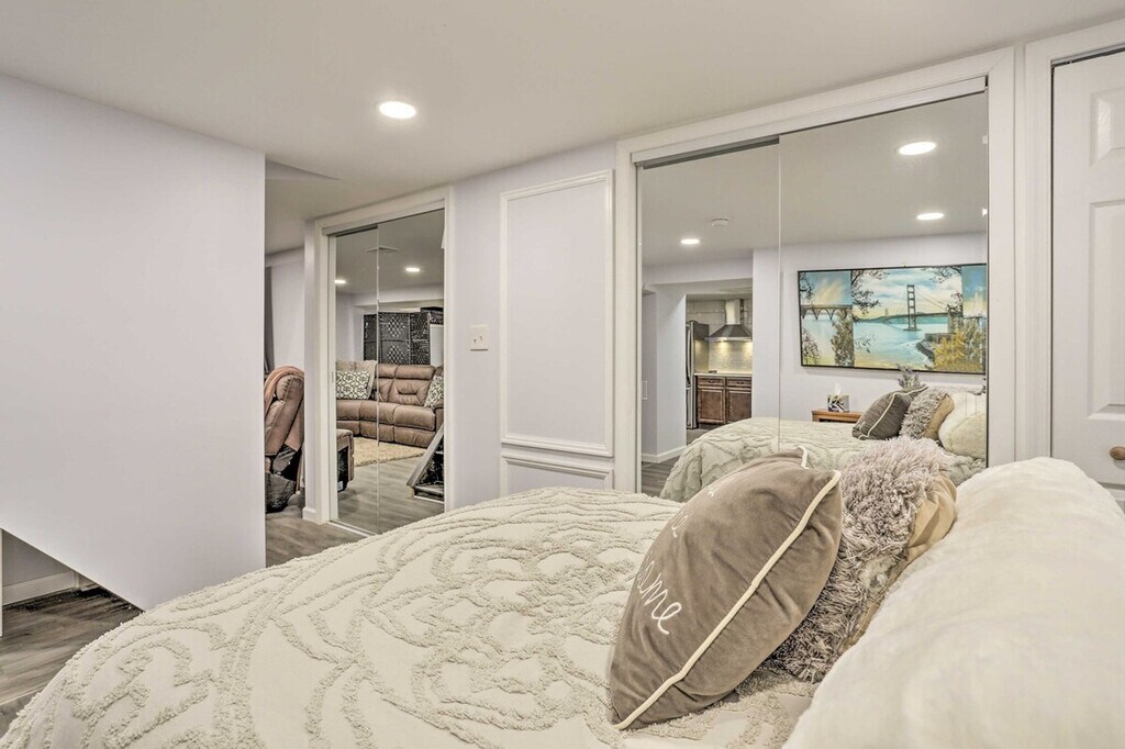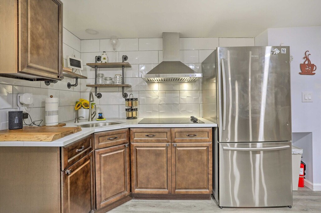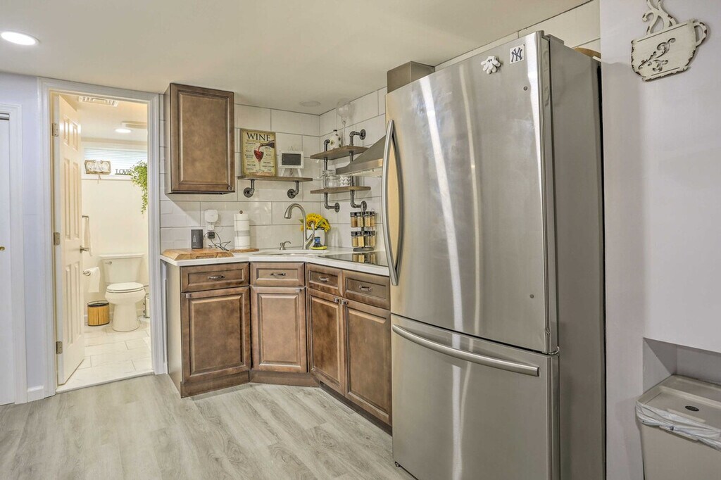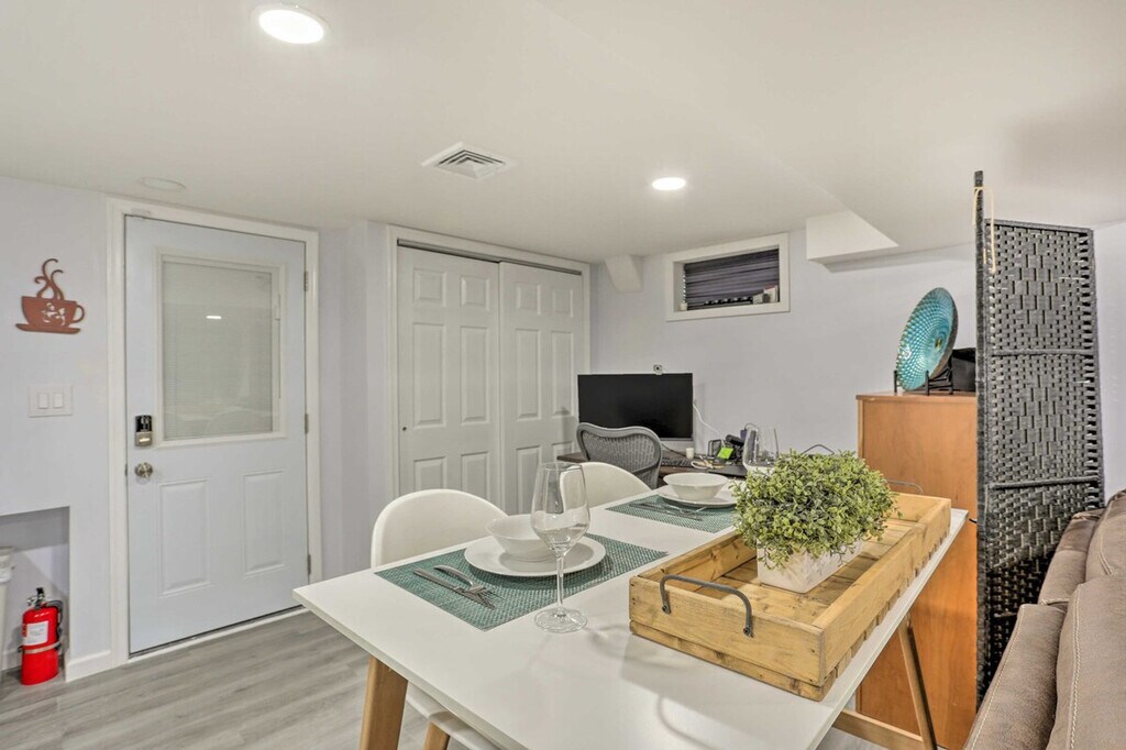 Escape to Saddle Brook and feel at home in this studio, perfect for a convenient stay. Nestled less than 10 miles from the George Washington Bridge and surrounded by suburban conveniences, this vacation rental offers the best of both worlds for your visit to the NYC area. Please note that stairs are required to access this lower-level unit. This hideaway offers everything you need for a hassle-free stay, including a stocked kitchen, a living area, and a furnished patio. Highlights include modern decor, a dining table, a shared backyard, a fire pit, a gas grill, and a dining area. The kitchen features an electric stovetop, stainless steel appliances, a Keurig coffee maker, a toaster, spices, cooking basics, dishware, and flatware. Enjoy free Wi-Fi (100 Mbps), central heating and air conditioning, linens and towels, complimentary toiletries, a keyless entry system, and a hair dryer. Surrounded by the conveniences of the suburbs, this apartment offers the best of both worlds as you visit the NYC area. When you're not exploring the city, this apartment offers everything you need for a hassle-free stay. The homeowner lives on-site in a separate unit and may be present during your stay. In case of emergency, the homeowner may need to access the breaker box or hot water heater in the unit. No smoking, pets, events, parties, or large gatherings are allowed. Your safety matters. This property features 2 exterior security cameras: 1 camera is a Ring doorbell located on the entrance to the unit and 1 camera is located on the side entrance of the home. They do not look into any interior spaces. The cameras record video and sound when activated by motion. Includes a desk workspace with a monitor and printer. Guests will have access to the entire property via keyless entry. [SI]