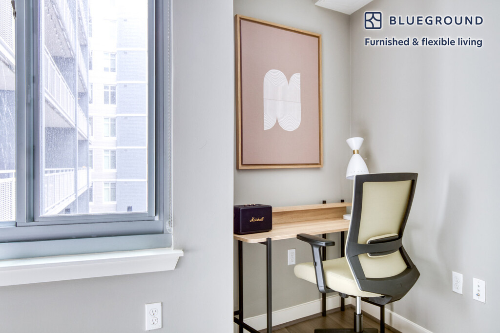 Show up and start living from day one in Washington, D.C. with this beautiful one bedroom Blueground apartment. You’ll love coming home to this thoughtfully furnished, beautifully designed, and fully equipped Navy Yard home. (ID #WDC474) The advertised rate of $2,270/month is the lowest available price, based on a 1 month(s) and 24 day(s) stay with a move-in date of January 10, 2026. If you’re looking for a 1-year stay, the rate is $2,590/month. Rates vary depending on the duration of stay, season, and other parameters. For exact pricing and additional pricing components, please visit our website and enter your desired move-in and move-out dates. The rate is applicable when billed upfront; it can be higher if billed in multiple payments. Brokers are welcome to reach out. Were you looking for an unfurnished lease? Try Blueground instead and upgrade from unfurnished to furnished living: - Furnished at rates comparable to unfurnished - No setup or furniture costs - save thousands - Move-in ready - save time, just bring your suitcase Designed with you in mind Gorgeous furniture, fully equipped kitchen, smart TV, and a premium wireless speaker are just a few of the amenities you’ll find inside this one bedroom apartment. Ideally located in Washington, D.C., you’ll find a lot to love outside as well. When you’re ready to relax, you’ll be happy to discover every Blueground bedroom comes with superior quality mattresses, luxury linens, and cozy towels. We handle everything so you can simply show up and start living. This apartment also offers in-apartment laundry. Sleeping arrangements Queen Bed, 63in/160cm Amenities Building amenities unique to this one bedroom apartment include an on-site: - Doorman - Dryer - Elevator - Swimming pool - Washing machine - Lounge - Parking - Pets allowed Arrival and ongoing support The entire apartment is yours to enjoy! Throughout your stay, you’ll have access to our Client Experience team through the Blueground App. You can schedule additional cleanings, submit maintenance requests, and view our neighborhood recommendations with just a few taps. We’ll share all details upon confirmation of your stay. Ideally Located This furnished apartment is situated in the heart of Navy Yard, conveniently located a block away from the Navy Yard Metro and across the street from Nationals Park. This fast-growing neighborhood is now a main attraction in DC, due to its proximity to the Southwest Waterfront and abundance of activities for locals and visitors alike. Visit Canal Park and explore the seasonal markets and events, grab dinner and drinks at a local brewery or upscale Italian restaurant and top it off with Ice Cream Jubilee for delicious, creative flavors of hand-made ice cream. Also be sure to check out the rooftop of the brand-new building where our luxury Blueground apartment is located for sweeping views of the city and even a direct view into Nats Park! Other things to note Building amenities may have an extra cost. This Blueground apartment has flexible lease options, allowing you to book it for one month, a year, or more. Pets are welcome, though weight limits and breed restrictions apply and may incur fees. Parking is offered based on availability and is subject to a fee. We take great pride in ensuring every photo displayed is shot in our own units with our actual furnishings. That said, we regularly refresh our decor and furniture arrangement, which may differ from what’s pictured. [SI]
