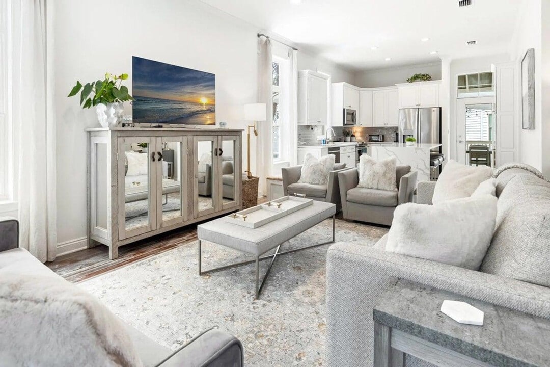 The advertised rate of $13,620/month is the lowest available price, based on a 30 day(s) stay with a move-in date of August 12, 2026. Rates vary depending on the duration of stay, season, and other parameters. For exact pricing and additional pricing components, please visit our website and enter your desired move-in and move-out dates. The rate is applicable when billed upfront; it can be higher if billed in multiple payments. Feel at home at Sandcastle 79, a beautifully designed 4-bedroom, 3-bath retreat located in the heart of Blue Mountain Beach along scenic 30A. Nestled in a quiet, family-friendly neighborhood, this home offers easy walkable beach access without crossing 30A, making it ideal for families and groups seeking both relaxation and convenience. This home features an open-concept floor plan filled with natural light and chic coastal décor. The spacious living area flows seamlessly into the dining space and fully equipped kitchen. Smart TVs are located in every bedroom, and high-speed Wi-Fi ensures you stay connected. The fully equipped kitchen makes meal prep effortless and includes Keurig and drip coffee makers, a blender, toaster, microwave, cookware, dishes, utensils, and ample counter space and storage. Beach essentials are provided, including beach chairs, umbrellas, a beach cart, and boogie boards. Guests enjoy access to the community pool, hot tub, and fitness center, located just minutes from the home. You'll be close to local favorites including Blue Mountain Creamery, Blue Mountain Bakery, scenic bike paths, nature trails, and some of the most beloved beaches along 30A. Walkable beach path is a 5-minute stroll with no crossing 30A. Golf cart friendly access to Blue Mountain Beach Access is approximately 0.5 miles away. No pets are allowed. Missing community wristbands will result in a $100 replacement fee. This home is not wheelchair accessible and requires stair use. The primary renter must be 25 years or older. [SI]