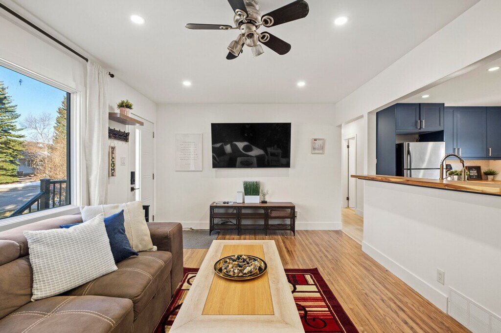 Welcome to The Owl, a charming 3-bedroom home in the heart of NW Calgary. Feel at home with three queen beds, a fenced backyard, and a patio. This pet-friendly apartment is equipped with three Roku TVs and fast Wi-Fi, making it an ideal retreat for families or groups. Conveniently located, you're just a short drive away from Alberta Children's Hospital, WinSport Canada Olympic Park, Save On Foods, and Downtown Calgary. Inside, you'll find a cozy living space with three bedrooms, each featuring a queen bed, and a bathroom. The kitchen is fully stocked, and the living room is equipped with a smart TV. Enjoy the convenience of a dining table that seats four and a bar top. The shared washer and dryer are located downstairs, and fast Wi-Fi is available throughout the apartment. The apartment offers free parking and a fully fenced shared backyard with a fire pit and chairs. While the patio is reserved for upstairs guests, firewood for the fire pit can be included. Pets are welcome, and the property is equipped with child-friendly amenities like kids parks and biking paths. Situated in NW Calgary, this apartment offers easy access to a variety of shopping centers and restaurants. With a quick drive, you can reach popular destinations such as Alberta Children's Hospital, WinSport Canada Olympic Park, and Downtown Calgary, making it a perfect base for exploring the city. The laundry room is shared with guests staying in the basement, and noise may travel through the floor due to the home's older construction. Quiet hours are enforced between 10:00 PM and 8:00 AM. Smoking indoors or near windows is strictly prohibited and will result in a $1000 fee. Parties or excessive noise are not allowed, with a penalty of $1000 for violations. Please remove shoes at the entrance and be mindful of the basement guests. Registration Number: BL273833 [SI]