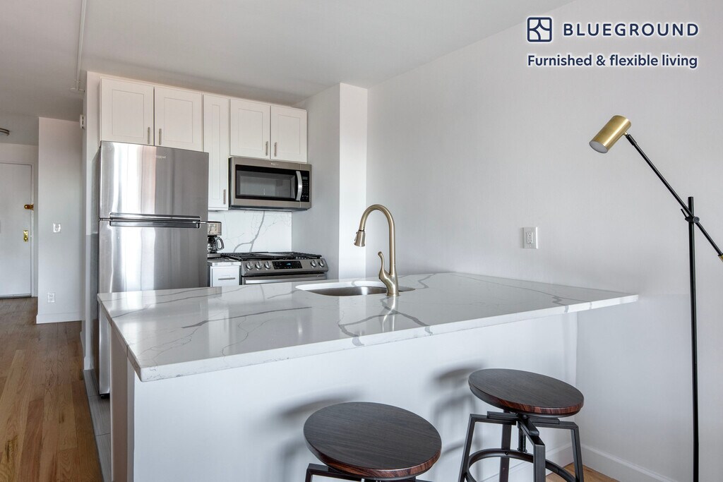 Discover the best of New York, with this one bedroom apartment in Manhattan Valley with balcony views over the city. It’ll be easy to simply show up and start living in this furnished apartment with its fully equipped kitchen, living room, and our dedicated, on-the-ground support. (ID #NYC1322) The advertised rate of $5,370/month is the lowest available price, based on a 11 month(s) and 29 day(s) stay with a move-in date of January 13, 2029. Rates vary depending on the duration of stay, season, and other parameters. For exact pricing and additional pricing components, please visit our website and enter your desired move-in and move-out dates. The rate is applicable when billed upfront; it can be higher if billed in multiple payments. Brokers are welcome to reach out. Were you looking for an unfurnished lease? Try Blueground instead and upgrade from unfurnished to furnished living: - Furnished at rates comparable to unfurnished - No setup or furniture costs - save thousands - Move-in ready - save time, just bring your suitcase Designed with you in mind Thoughtfully designed with bespoke finishes, modern furnishings, and a fully equipped kitchen, you’ll enjoy that “I’m home” feeling with this Blueground apartment. Whether you’re lounging in your cozy living room streaming the latest and greatest entertainment on the smart TV or premium wireless speaker, or getting some well-earned rest on the superior quality mattress with luxury linens, you’ll fall in love with everything this Manhattan Valley apartment has to offer. This apartment also offers in-apartment laundry. Sleeping arrangements King Bed, 70.8in/180cm Amenities Building amenities unique to this one bedroom apartment include an on-site: - Doorman - Dryer - Elevator - Washing machine - Pets allowed - Playground Arrival and ongoing support The entire apartment is yours to enjoy! Throughout your stay, you’ll have access to our Client Experience team through the Blueground App. You can schedule additional cleanings, submit maintenance requests, and view our neighborhood recommendations with just a few taps. We’ll share all details upon confirmation of your stay. Other things to note Building amenities may have an extra cost. This Blueground apartment has flexible lease options, allowing you to book it for one month, a year, or more. Pets are welcome, though weight limits and breed restrictions apply and may incur fees. Brokes CYOF. We take great pride in ensuring every photo displayed is shot in our own units with our actual furnishings. That said, we regularly refresh our decor and furniture arrangement, which may differ from what’s pictured. [SI]