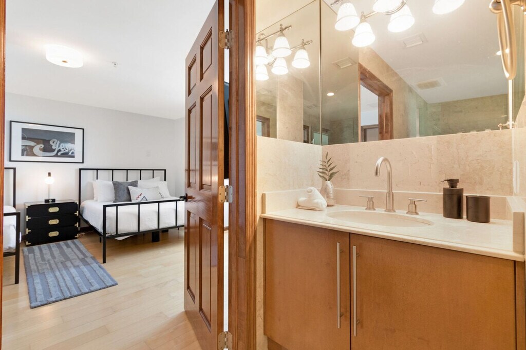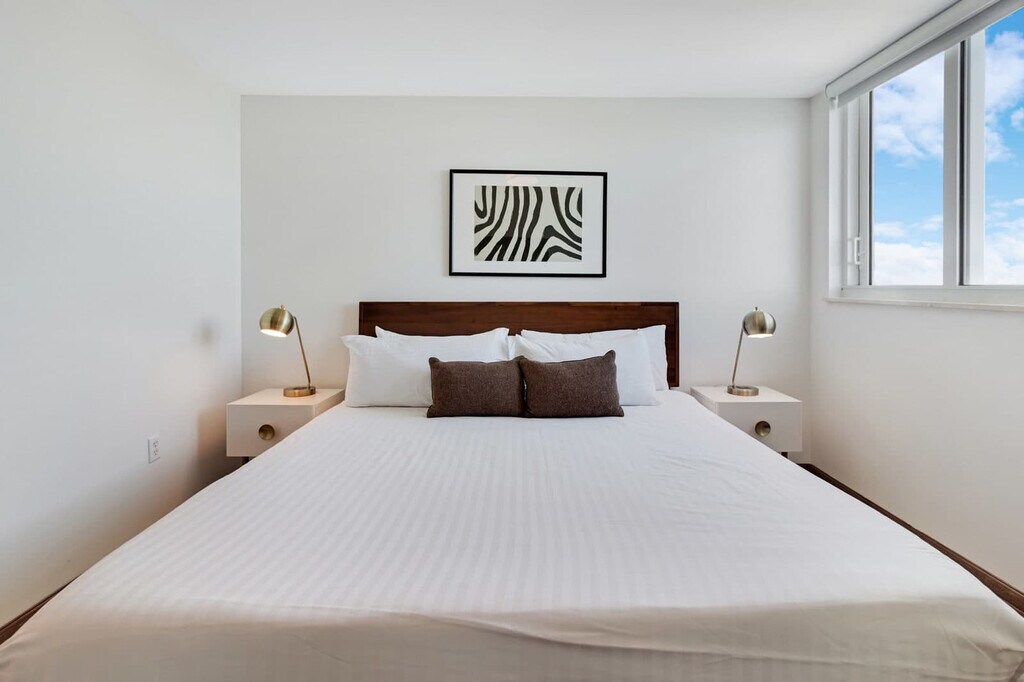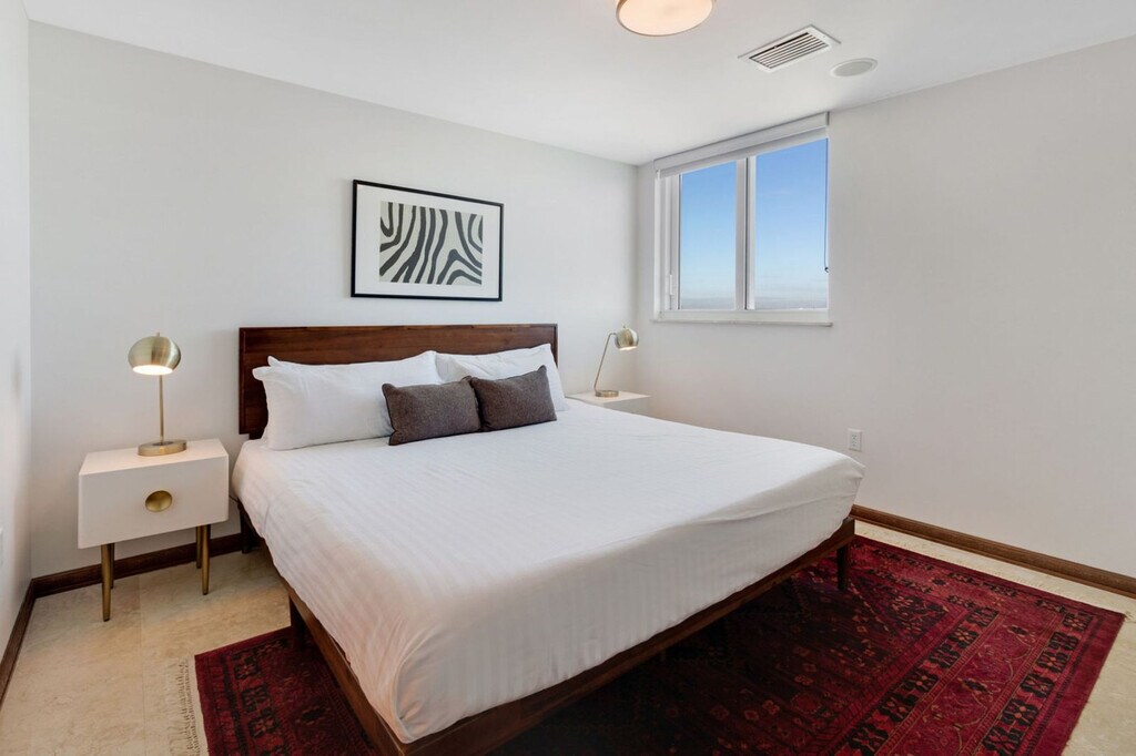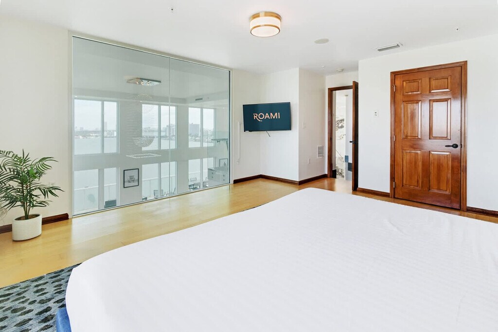 Welcome to this apartment in Roami at Adagio, where panoramic bay views and sleek design define your Miami experience. Located in scenic North Bay Village, this centrally located property is just a 10-minute drive from the sandy shores of Miami Beach. Feel at home with sweeping vistas of Biscayne Bay and the Atlantic Ocean. Adagio offers stunning views of Biscayne Bay and the Atlantic Ocean from your spacious living room. The fully stocked kitchen and comfortable dining areas make this home ideal for both relaxation and entertaining. Enjoy amenities including an in-unit washer and dryer, and a smart TV with streaming apps installed. Complimentary coffee is also available. Onsite parking is available at $15 per vehicle per night. Discover a tranquil retreat with all the excitement of Miami just moments away at Roami at Adagio, nestled in the serene neighborhood of North Bay Village. Known for its scenic waterfront views and laid-back vibe, this hidden gem offers the perfect balance of relaxation and access to the city’s top attractions. With easy access to the vibrant nightlife of Miami Beach and the cultural landmarks of downtown Miami, you’ll find yourself surrounded by everything you need for the perfect getaway. Nearby attractions include North Bay Village Park (0.4 miles), Miami Beach (2.5 miles), Wynwood Walls (5 miles), The Venetian Causeway (3 miles), Miami Design District (4 miles), and Fisher Island (6 miles). Getting around is easy with Lyft and Uber. This is a smoke-free environment. Smoking of any kind is not permitted within or outside, including balconies, patios, or common and/or parking areas. Any sign of smoking is a violation of the stay agreement, which may result in immediate termination and recovery fees beginning at $500. There is a $200 penalty for removing smoke detectors and a $200 penalty for lost key fobs. Guests must agree to not disturb neighbors at all times during the stay and must observe quiet hours from 9pm-8am each day. Check-in is at 4 PM and check-out is at 11 AM, with a $75/hr late fee. One towel per guest per stay. To abide by all legal requirements and HOA rules, you will be asked to provide a copy of your official government-issued photo ID, confirm your contact information, and pass through our verification portal. Minimum age requirement of primary person booking should be 22 years old for out of town guests and 25 years old for local guests. No weapons or drugs allowed; zero tolerance means police will be called for violating this rule. [SI]