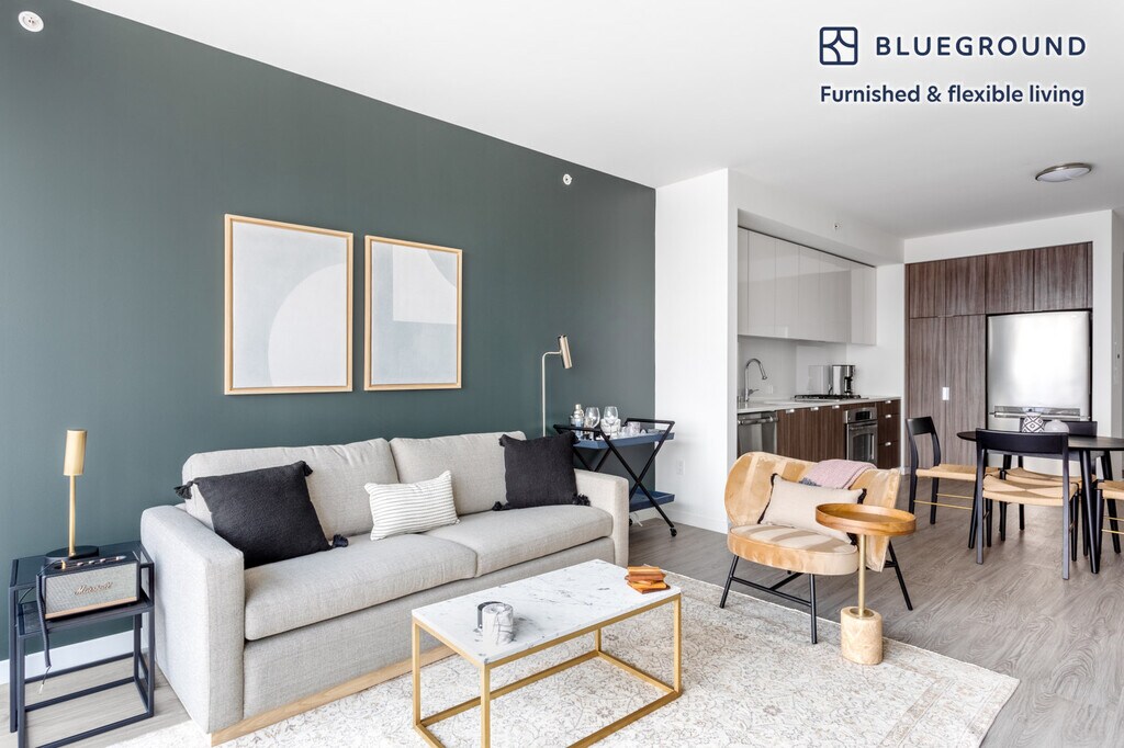 Show up and start living from day one in San Francisco with this cozy one bedroom Blueground apartment. You’ll love coming home to this thoughtfully furnished, beautifully designed, and fully equipped SoMa home with stunning high floor views over the city. (ID #SFO352) The advertised rate of $5,730/month is the lowest available price, based on a 11 month(s) and 29 day(s) stay with a move-in date of February 8, 2026. Rates vary depending on the duration of stay, season, and other parameters. For exact pricing and additional pricing components, please visit our website and enter your desired move-in and move-out dates. The rate is applicable when billed upfront; it can be higher if billed in multiple payments. Brokers are welcome to reach out. Were you looking for an unfurnished lease? Try Blueground instead and upgrade from unfurnished to furnished living: - Furnished at rates comparable to unfurnished - No setup or furniture costs - save thousands - Move-in ready - save time, just bring your suitcase Designed with you in mind Thoughtfully designed with bespoke finishes, modern furnishings, and a fully equipped kitchen, you’ll enjoy that “I’m home” feeling with this Blueground apartment. Whether you’re lounging in your cozy living room streaming the latest and greatest entertainment on the smart TV or premium wireless speaker, or getting some well-earned rest on the superior quality mattress with luxury linens, you’ll fall in love with everything this SoMa apartment has to offer. This apartment also offers in-apartment laundry. Sleeping arrangements King Bed, 70.8in/180cm Amenities Building amenities unique to this one bedroom apartment include an on-site: - BBQ Area - Doorman - Dryer - Elevator - Swimming pool - Washing machine - Lounge - Parking - Pets allowed - Playground Arrival and ongoing support The entire apartment is yours to enjoy! Throughout your stay, you’ll have access to our Client Experience team through the Blueground App. You can schedule additional cleanings, submit maintenance requests, and view our neighborhood recommendations with just a few taps. We’ll share all details upon confirmation of your stay. Ideally Located This furnished apartment is located in South of Market, known as SoMa. A trendy, urban district, famous for its excellent art and museum scene. Home to a diverse mix of entrepreneurs and young families, this neighborhood offers hip bars, fine dinings and delicious coffee. Don’t miss the plethora of museums, including a visit to the San Francisco Modern Museum of Art. Baseball lovers frequently visit SoMa, as it is also home to the San Francisco Giants. Other things to note Building amenities may have an extra cost. This Blueground apartment has flexible lease options, allowing you to book it for one month, a year, or more. Pets are welcome, though weight limits and breed restrictions apply and may incur fees. We take great pride in ensuring every photo displayed is shot in our own units with our actual furnishings. That said, we regularly refresh our decor and furniture arrangement, which may differ from what’s pictured. Also note - There have been reported instances of homeless populations nearby [SI]