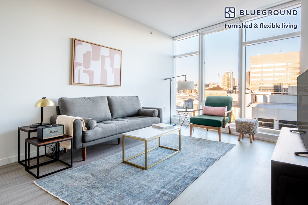Show up and start living from day one in San Francisco with this charming one bedroom Blueground apartment. You’ll love coming home to this thoughtfully furnished, beautifully designed, and fully equipped SoMa home. (ID #SFO403) The advertised rate of $3,770/month is the lowest available price, based on a 1 month(s) and 29 day(s) stay with a move-in date of November 12, 2025. If you’re looking for a 1-year stay, the rate is $4,490/month. Rates vary depending on the duration of stay, season, and other parameters. For exact pricing and additional pricing components, please visit our website and enter your desired move-in and move-out dates. The rate is applicable when billed upfront; it can be higher if billed in multiple payments. Brokers are welcome to reach out. Were you looking for an unfurnished lease? Try Blueground instead and upgrade from unfurnished to furnished living: - Furnished at rates comparable to unfurnished - No setup or furniture costs - save thousands - Move-in ready - save time, just bring your suitcase Designed with you in mind Thoughtfully designed with bespoke finishes, modern furnishings, and a fully equipped kitchen, you’ll enjoy that “I’m home” feeling with this Blueground apartment. Whether you’re lounging in your spacious living room streaming the latest and greatest entertainment on the smart TV or premium wireless speaker, or getting some well-earned rest on the superior quality mattress with luxury linens, you’ll fall in love with everything this SoMa apartment has to offer. This apartment also offers in-apartment laundry. Sleeping arrangements Queen Bed, 63in/160cm Amenities Building amenities unique to this one bedroom apartment include an on-site: - BBQ Area - Doorman - Dryer - Elevator - Swimming pool - Washing machine - Lounge - Parking - Pets allowed - Playground Arrival and ongoing support The entire apartment is yours to enjoy! Throughout your stay, you’ll have access to our Client Experience team through the Blueground App. You can schedule additional cleanings, submit maintenance requests, and view our neighborhood recommendations with just a few taps. We’ll share all details upon confirmation of your stay. Ideally Located This furnished apartment is located in South of Market, known as SoMa. A trendy, urban district, famous for its excellent art and museum scene. Home to a diverse mix of entrepreneurs and young families, this neighborhood offers hip bars, fine dinings and delicious coffee. Don’t miss the plethora of museums, including a visit to the San Francisco Modern Museum of Art. Baseball lovers frequently visit SoMa, as it is also home to the San Francisco Giants. Other things to note Building amenities may have an extra cost. This Blueground apartment has flexible lease options, allowing you to book it for one month, a year, or more. Pets are welcome, though weight limits and breed restrictions apply and may incur fees. We take great pride in ensuring every photo displayed is shot in our own units with our actual furnishings. That said, we regularly refresh our decor and furniture arrangement, which may differ from what’s pictured. Also note - There have been reported instances of homeless populations nearby