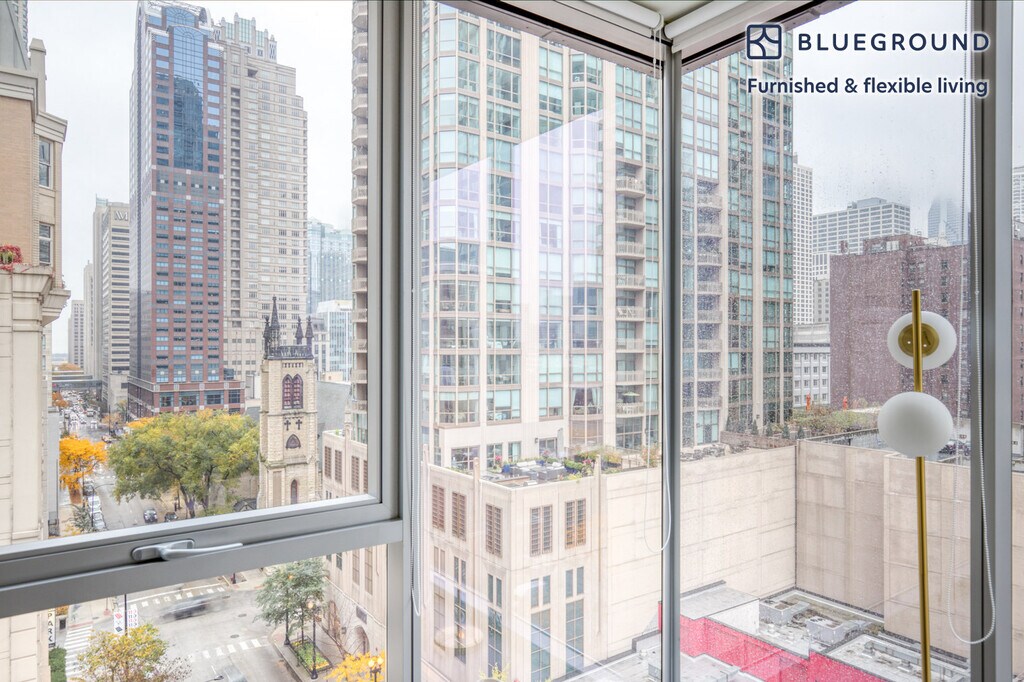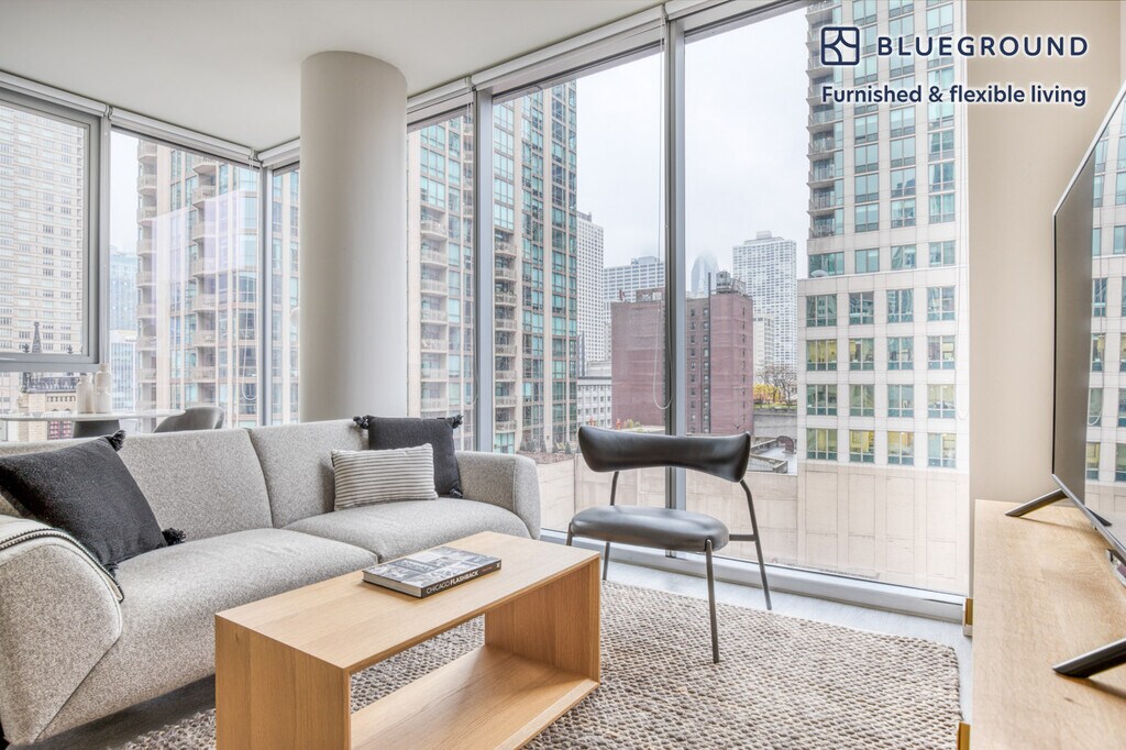Show up and start living from day one in Chicago with this stylish one bedroom Blueground apartment. You’ll love coming home to this thoughtfully furnished, beautifully designed, and fully equipped Near North Side home with stunning views over the city. (ID #CHI124) The advertised rate of $1,830/month is the lowest available price, based on a 2 month(s) and 1 day(s) stay with a move-in date of January 12, 2026. If you’re looking for a 1-year stay, the rate is $3,450/month. Rates vary depending on the duration of stay, season, and other parameters. For exact pricing and additional pricing components, please visit our website and enter your desired move-in and move-out dates. The rate is applicable when billed upfront; it can be higher if billed in multiple payments. Brokers are welcome to reach out. Were you looking for an unfurnished lease? Try Blueground instead and upgrade from unfurnished to furnished living: - Furnished at rates comparable to unfurnished - No setup or furniture costs - save thousands - Move-in ready - save time, just bring your suitcase Designed with you in mind Gorgeous furniture, fully equipped kitchen, smart TV, and a premium wireless speaker are just a few of the amenities you’ll find inside this one bedroom apartment. Ideally located in Chicago, you’ll find a lot to love outside as well. When you’re ready to relax, you’ll be happy to discover every Blueground bedroom comes with superior quality mattresses, luxury linens, and cozy towels. We handle everything so you can simply show up and start living. This apartment also offers in-apartment laundry. Sleeping arrangements King Bed, 70.8in/180cm Amenities Building amenities unique to this one bedroom apartment include an on-site: - BBQ Area - Doorman - Dryer - Elevator - Swimming pool - Washing machine - Lounge - Pets allowed Arrival and ongoing support The entire apartment is yours to enjoy! Throughout your stay, you’ll have access to our Client Experience team through the Blueground App. You can schedule additional cleanings, submit maintenance requests, and view our neighborhood recommendations with just a few taps. We’ll share all details upon confirmation of your stay. Ideally Located This furnished apartment is located in Chicago's Near North Side neighborhood. Part of the storied Miracle Mile, this thriving neighborhood set on the shore of Lake Michigan is home to some of the city's most notable skyscrapers. The Near North Side has a fabulous dining scene, with everything from Chicago-style pizza to casual pubs to five-star restaurants. Neighborhood highlights include the Museum of Contemporary Art and 360 Chicago, a skyscraper with an observation deck. There's also Navy Pier, a lakefront park with casual dining, dinner cruises and carnival rides. The Near North Side is served by the CTA's Brown, Red and Purple Lines, as well as several bus routes. Other things to note Building amenities may have an extra cost. This Blueground apartment has flexible lease options, allowing you to book it for one month, a year, or more. Pets are welcome, though weight limits and breed restrictions apply and may incur fees. We take great pride in ensuring every photo displayed is shot in our own units with our actual furnishings. That said, we regularly refresh our decor and furniture arrangement, which may differ from what’s pictured. Also note - This apartment faces the street - This apartment's central location means it can be noisy at times - This is a guarded building equipped with a doorman/concierge at all times [SI]