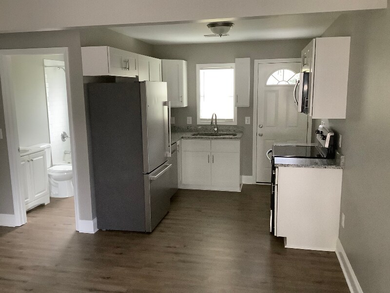 Property Id: 1846686 2BR/1 Bath unit in privately owned 9 unit brick apartment building in downtown Pilot Mountain. This entire building was completely remodeled in 2023. Everything is new including the plumbing, wiring, appliances, HVAC, doors, windows, and much more. Very private with concrete patio in back and large back yard. Parking in front of each unit providing easy access with no steps. Ceramic tile in tub/shower. Luxury vinyl plank flooring throughout. All new Stainless Steel appliances and granite countertops. New energy efficient heat pumps and duct work. Storm doors on front and back with privacy fence between each patio. Private and secure laundry on site only accessible to residents. Dodson Mill Apartments is meticulously maintained and managed by the owners. It is not just your typical apartment building. Come see for yourself.