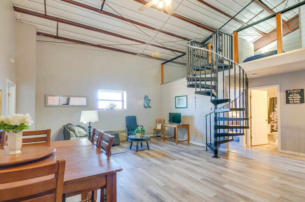 Feel at home in this 2-bedroom, 1-bathroom apartment in Del Norte, Colorado. This 2-story apartment offers step-free entry with an elevator, and a spiral staircase is required to access the sleeping area in the loft. This apartment offers convenience and comfort with a fully equipped kitchen and Smart TV. The kitchen includes a stove/oven, microwave, dishwasher, refrigerator, dishware/flatware, drip coffee maker, and toaster. You'll also find free Wi-Fi, a washer/dryer, linens/towels, complimentary toiletries, central heating, and laundry detergent. Community parking is available in the parking lot for up to 5 vehicles, and street parking and RV/trailer parking are allowed on-site. Located near downtown, this apartment is 15 miles from the Natural Arch Trailhead. Spend your day on the slopes at the Wolf Creek Ski Area or embark on a thrilling hike in Great Sand Dunes National Park. This apartment is the perfect choice for your next family trip to Southwest Colorado. Smoking, pets, events, parties, and large gatherings are not allowed. The property does not have air conditioning. Your safety matters; this property features an exterior security camera above the front door facing the front outdoor entry and parking lot. The camera does not look into any interior spaces and actively records video and sound while guests are in residence. A photo ID may be required upon check-in. [SI]