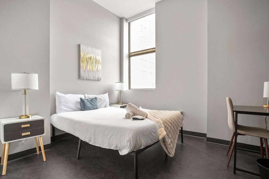 Experience the charm of a newly revitalized historic building in Downtown Pittsburgh, offering seamless access to the city's attractions. This condo is perfect for both leisure and business travelers, featuring seamless check-in, fast Wi-Fi, and thoughtful touches with a tech-first approach to make you feel at home while you're away. This spacious 1-bedroom apartment features inviting living areas, a fully equipped kitchen, and a bathroom complete with toiletries. Enjoy access to the building's fitness center with strength and cardio rooms. Additional amenities include an in-unit washer and dryer, a smart TV with streaming apps, a TV in the living room, and complimentary coffee. A pet fee may be charged for guests traveling with an emotional support animal. Optional services such as mid-stay cleanings and early check-in or late checkout are available for an additional fee. Centrally located in Downtown Pittsburgh, you'll find endless restaurants, entertainment, and activities just around the corner. A car isn’t necessary to explore the area, with everything within walking distance. All properties are smoke-free environments. Any sign of smoking is a violation of the stay agreement, which may result in immediate termination and recovery fees beginning at $500. Check-in is at 4 PM and check-out is at 11 AM, with a $75 per hour late fee. There is a $200 penalty for removing smoke detectors and a $200 penalty for lost key fobs. No outside guests are allowed without permission. Guests must agree to observe quiet hours from 9 PM to 8 AM each day, and the home is monitored with decibel sensors for compliance. Long-term guests will be subject to a background search and credit check. The unit is equipped with a smart lock for hassle-free and secure entry using a personalized access code. A valid photo ID is required to complete the booking. No weapons or drugs are allowed, and police will be called for violations.