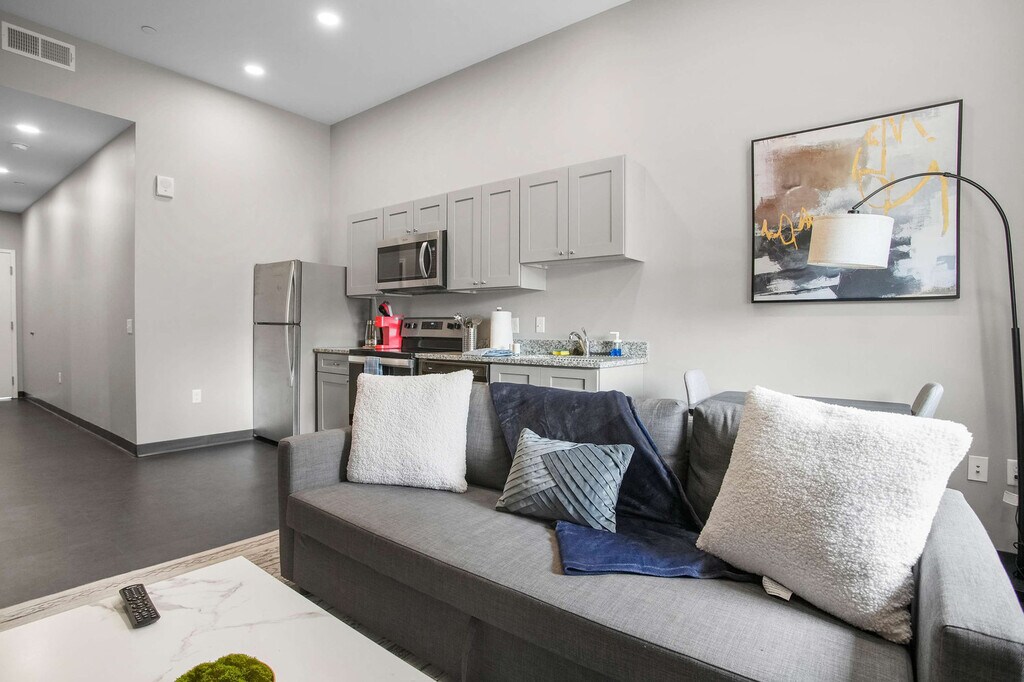 Feel at home in this centrally located 1-bedroom apartment in Downtown Pittsburgh, offering easy access to all the city's attractions. This spacious apartment features an inviting living area, a fully equipped kitchen, and a bathroom complete with toiletries. Enjoy access to the building's fitness center with strength and cardio rooms. You can also enjoy an in-unit washer and dryer, a Smart-TV with streaming apps installed, a TV in the living room, and complimentary coffee. Endless restaurants, entertainment, and activities are just around the corner. A car isn’t necessary to explore the area, as you can find restaurants, entertainment, and activities within walking distance. Smoking of any kind is not permitted within or outside of the apartment, including balconies, patios, or common and/or parking areas. Any sign of smoking is a violation of the stay agreement, which may result in immediate termination and recovery fees beginning at $500. There is a $200 penalty for removing smoke detectors and a $200 penalty for lost key fobs. Guests must agree to not disturb neighbors at all times during the stay and must observe quiet hours from 9pm-8am each day. Check-in is at 4 PM and check-out is at 11 AM (with a $75/hr late fee). No outside guests are allowed without permission. One towel is provided per guest per stay. A valid photo ID is required to complete the booking. The minimum age requirement for the primary person booking is 22 years old for out-of-town guests and 25 years old for local guests. No weapons or drugs are allowed; police will be called for violating this rule. [SI]