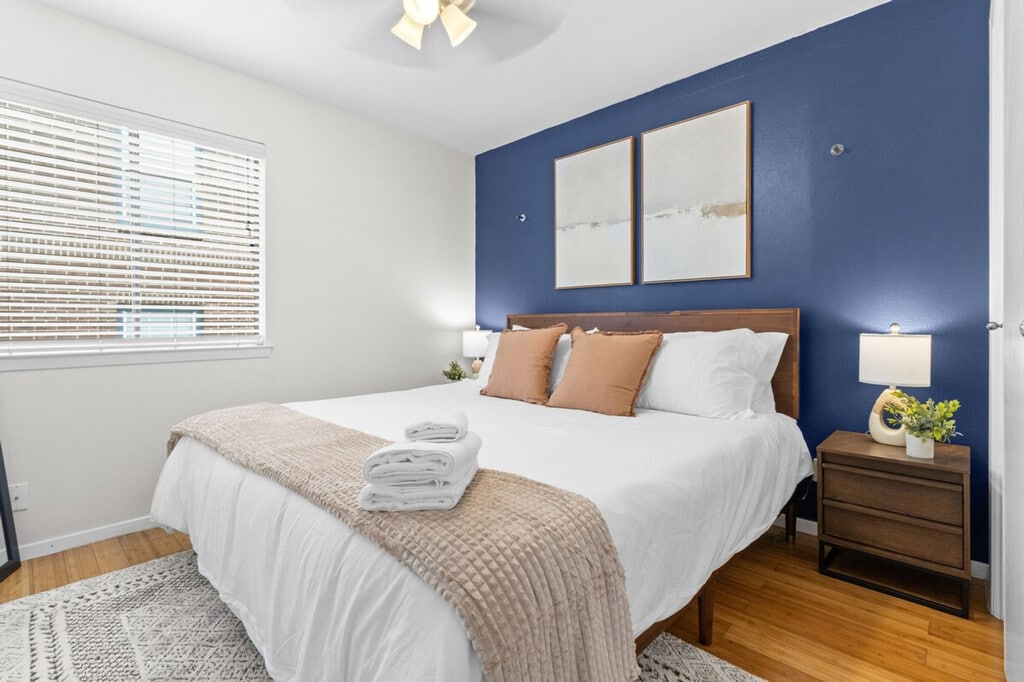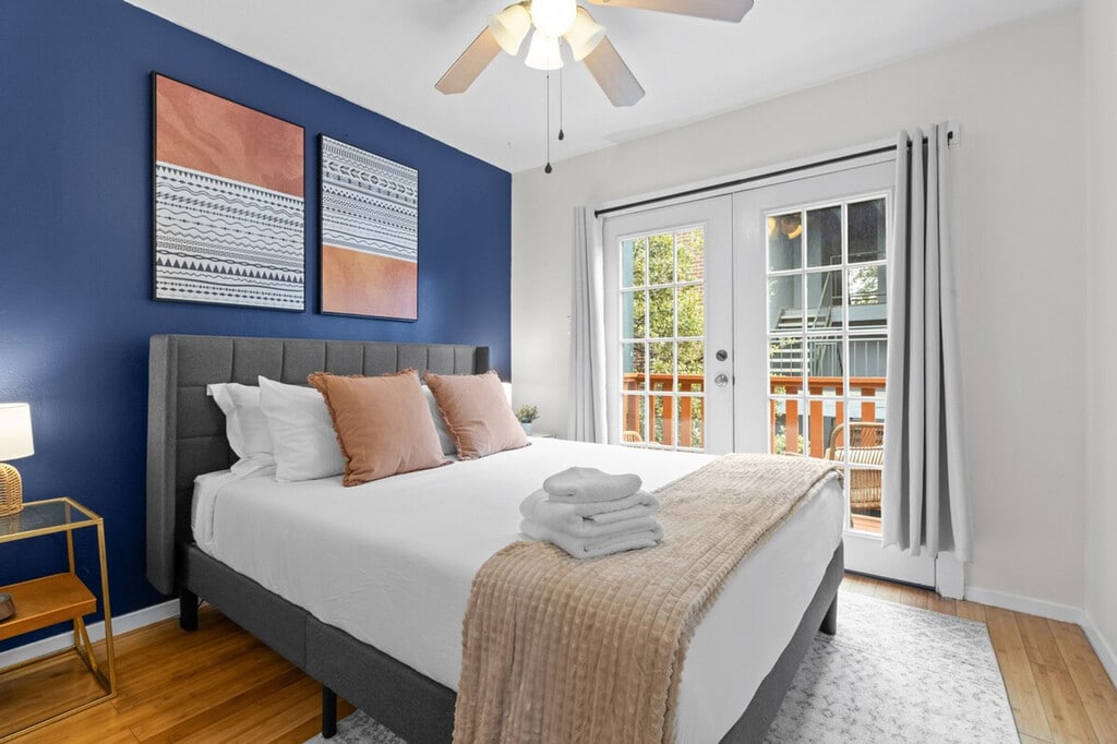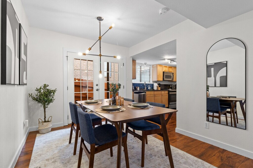 Welcome to this South Austin townhouse, a modern 2-bedroom home perfectly located near downtown, Zilker Park, and Austin’s best food, music, and nightlife. Accessed via a short set of stairs, this home blends comfort, convenience, and location, ideal for couples, solo travelers, business guests, or longer stays. Feel at home in this stylish space. The open layout creates a calm, welcoming atmosphere that works well for relaxing or working remotely. The living area features a comfortable sofa with pillows, a smart TV for streaming, high-speed Wi-Fi, a coffee table, and reading lamps. The fully equipped kitchen includes a stove, oven, refrigerator/freezer, microwave, coffee maker, kettle, toaster, pots, pans, cooking essentials, plates, glassware, and silverware. The primary bedroom features a comfortable king-size bed, fresh linens, pillows, a cozy throw, and a closet with hangers, and the secondary bedroom offers a comfortable queen-size bed, fresh linens and pillows, and a closet with hangers. The full bathroom offers a bathtub and shower combo, fresh towels, and essential toiletries. A half bathroom is conveniently located for easy access from the living area. Enjoy access to a private patio and shared outdoor seating areas within the townhouse community. Free on-site parking is available. Enjoy walkable access to local cafés and restaurants. This townhouse is located near South Congress (SoCo) (5 min), Downtown Austin (5 min), Zilker Park & Barton Springs (7 min), Lady Bird Lake Trail (5 min), Rainey Street (6 min), ACL / Zilker Events (7 min), and Austin Airport (AUS) (12 min). This home is part of a quiet townhouse complex, and you may occasionally hear normal neighborhood sounds. [SI]
