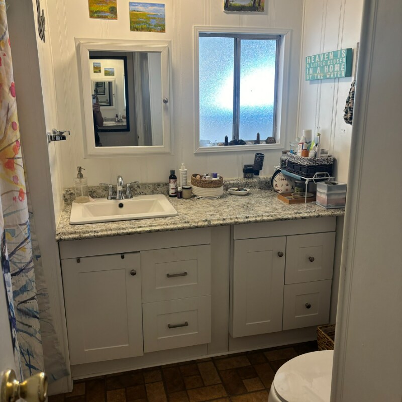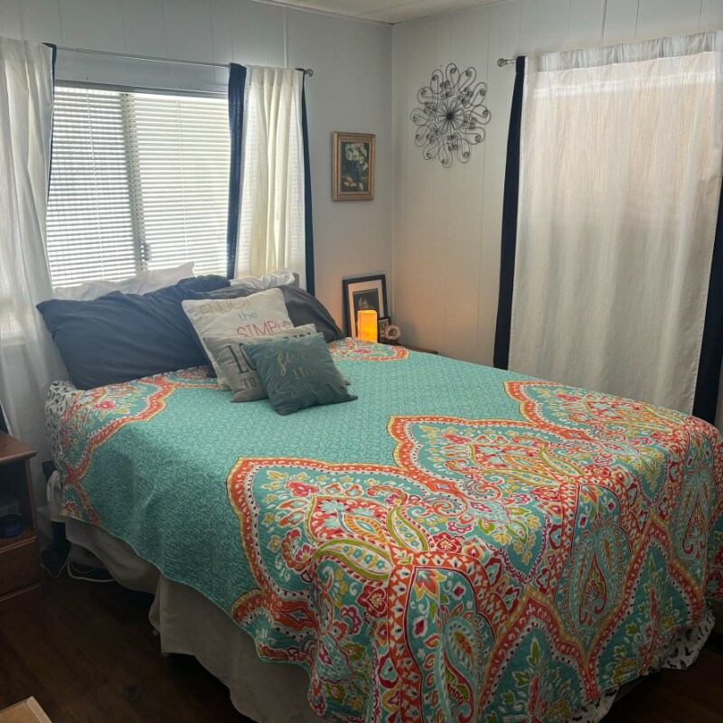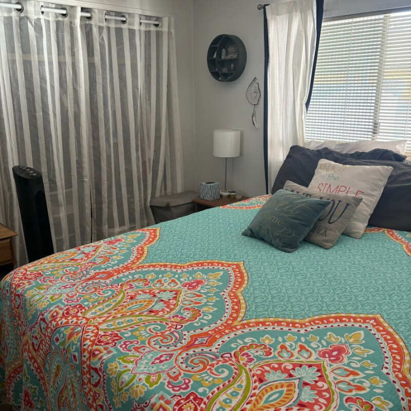 Property Id: 2204834 **Gated 55+ Community — Renters Must Be 55 or Older** Cozy one-bedroom home that comfortably accommodates two people. Compact yet surprisingly spacious, this retreat offers all the comforts you need. Enjoy the electric fireplace in the living room — perfect for chilly mornings and evenings. The home comes equipped with a microwave, coffee maker, air fryer, shower head filter, full-size refrigerator, and washer/dryer for your convenience. Located just inside the community gate, you'll enjoy easy access in and out of the park. The neighbors are quiet, friendly, and always willing to help if needed. Outside, relax on the lovely patio featuring a comfortable sitting area, dining space, heater, grill, and lush plants — creating a peaceful and private atmosphere. Inside, the living room includes a pull-out sofa bed, recliner, electric fireplace, and plenty of greenery to make the space feel warm and homey.