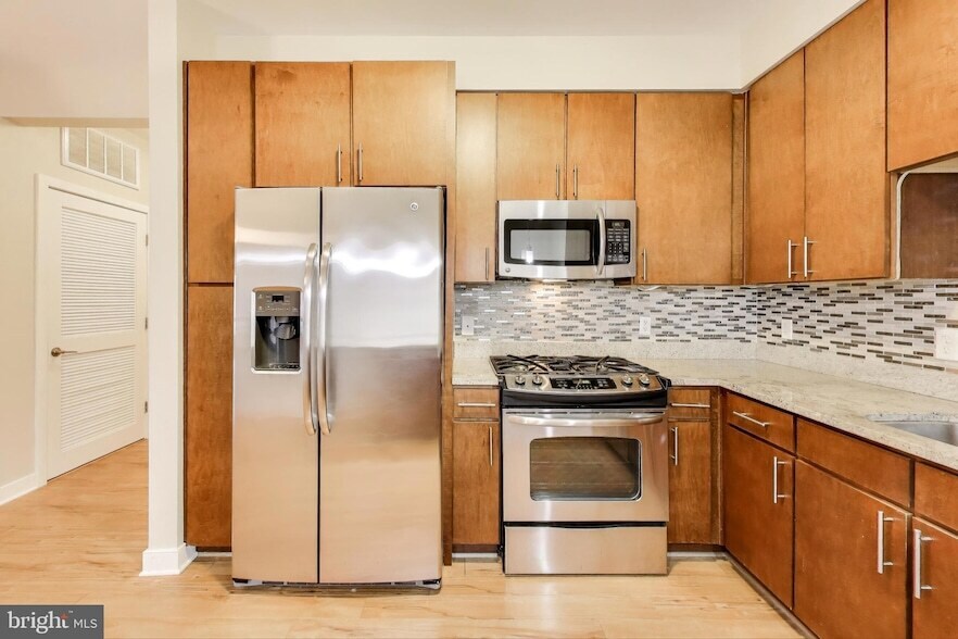 Fabulous modern 2 bedroom/1.5 bath condo in Downtown Silver Spring is available for IMMEDIATE move-in! Spacious and filled with natural light, this open concept layout has hardwood flooring and 9' ceilings throughout. The kitchen has stainless appliances, including a gas range, lots of cabinet and counter space and granite countertops. Huge living/dining area flows off kitchen for endless possibilities. Plus, there is a private, convenient powder room off the unit foyer. Large open primary bedroom space with en suite full bath and double generously sized closets. 2nd bedroom/den is perfect for working from home or accommodating guests! Full-size washer dryer in unit for your convenience. The Orion is a luxury building constructed in 2012 and located in DTSS, close to DC, less than a mile to Silver Spring Metro Station (WMATA Red Line), blocks to bus lines and Capital Bike Share. So easy to get around or into the District! Shopping and restaurant right in your backyard with AFI, IMAX, Target, Giant, CVS , Kaldi's Social Housel, Black Lion, El Taco Loco and so much more! The Orion also has a fitness center, welcoming lobby, rooftop lounge with fireplace and TV, rooftop grill and outdoor entertaining area with beautiful city views. One assigned parking space is available in the Galaxy garage on-site for just $150/month. Ready for immediate occupancy. Rent includes condo fee, trash removal, building amenities and gas for cooking. Tenant pays all utilities + parking if desired. Pets will be considered on a case by case basis.