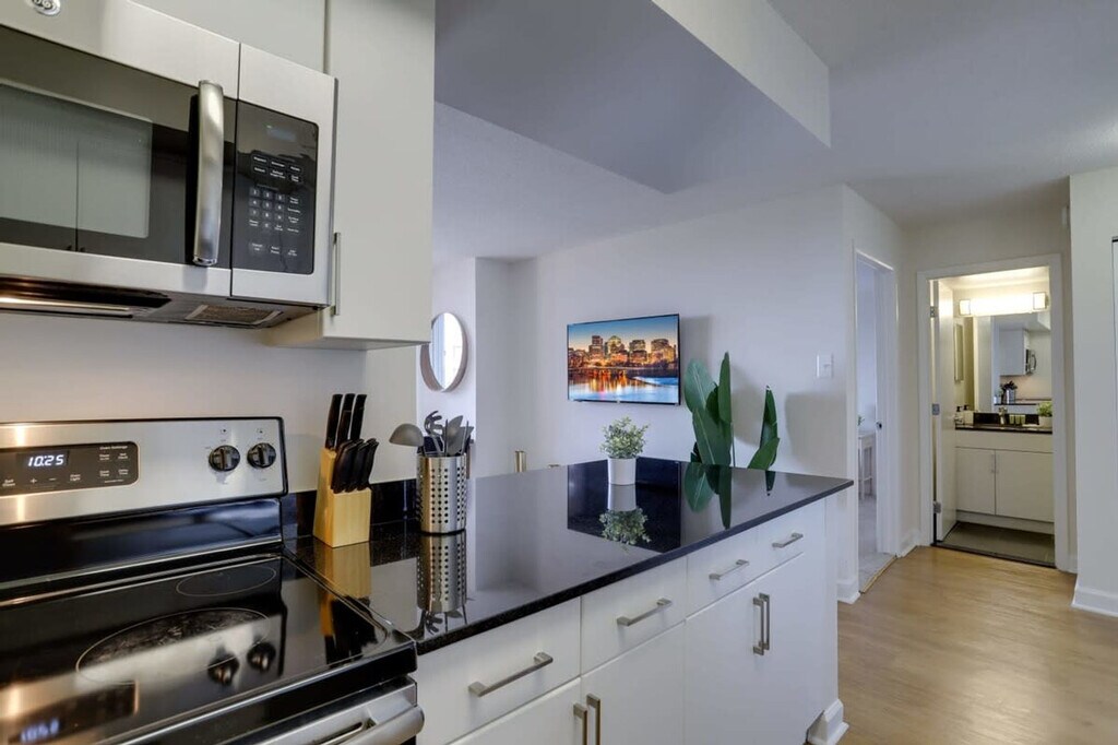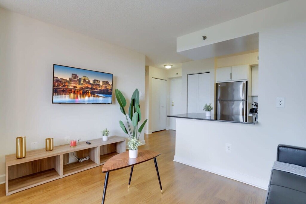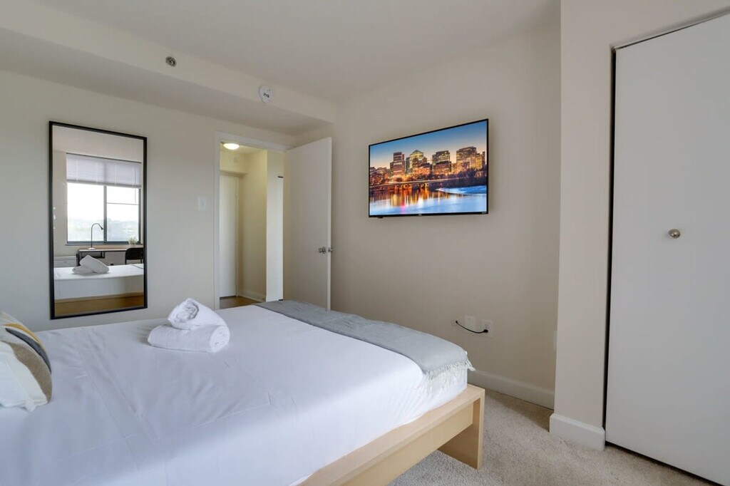 Welcome to your stylish 1-bedroom retreat in the heart of National Landing! This apartment is your perfect home base for exploring Arlington and Washington, D.C. with incredible ease. Feel at home in this centrally located apartment. Step into this bright and modern 1-bedroom, 1-bathroom apartment, thoughtfully designed to be your comfortable and stylish home away from home. The serene bedroom features a plush king-size bed for a peaceful night's sleep. The welcoming living area has a cozy sofa bed and a TV, ideal for unwinding after a day of exploring. The kitchen is fully equipped with modern appliances and all the essentials you need to prepare meals. This apartment includes a washer and dryer for a hassle-free stay. This apartment is in the heart of National Landing (Pentagon City), a vibrant and well-connected neighborhood perfect for both business and leisure travel to the D.C. area. You are steps from premier shopping at Fashion Centre at Pentagon City and just two Metro stops from D.C.'s National Mall and Smithsonian Museums. Surrounded by top-rated dining, you can enjoy wood-fired pizzas at Matchbox or vibrant tacos at Tacombi. For fun bars and nightlife, The Freshman is a sophisticated all-day cafe with excellent cocktails, Highline RxR is a lively spot with a huge craft beer selection and games, and Bonefish Grill offers signature cocktails in an upscale, relaxed setting. You are just a few Metro stops from the National Mall, home to the world-class Smithsonian Museums like the International Spy Museum, and a short distance from the profound Arlington National Cemetery. You are just one block from the Pentagon City Metro Station, putting all of D.C.'s landmarks at your fingertips. The Reagan National Airport (DCA) is just one Metro stop away, making for a stress-free commute. You are right next to the iconic 18-mile Mount Vernon Trail, perfect for a scenic bike ride or run. A large and modern Whole Foods Market is located just a short walk away. For the safety and security of all residents, the building requires a brief guest screening prior to check-in, which must be completed before arrival. The building is currently undergoing remodeling, and occasional daytime noise may occur. Smoking inside is charged a $300 fine, and parties on the property are charged a $300 fine. Check-in is scheduled for 4:00 p.m., and check-out is at 11:00 a.m. Package deliveries to the property address are not allowed. In case of any lost linens or apartment keys, an additional cost will be charged to replace them. Please turn off the air conditioning when leaving. [SI]