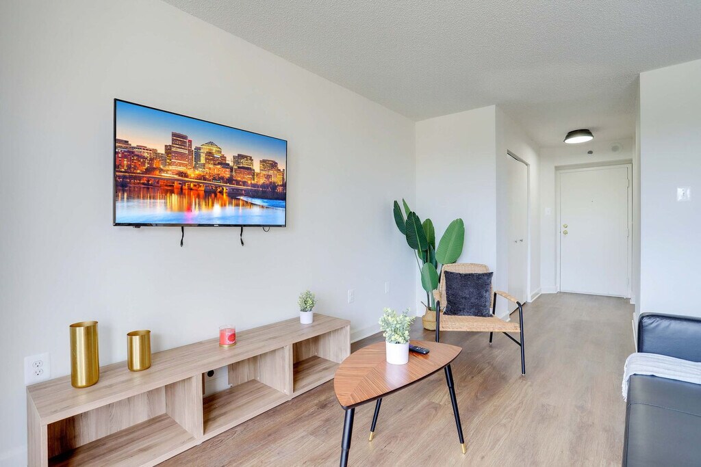 Feel at home in this bright, modern 1-bedroom, 1-bathroom apartment in National Landing (Pentagon City), designed for comfort and convenience and making it the perfect home base for your visit to Arlington and Washington, D.C. This apartment is fully equipped with modern appliances and all essentials in the kitchen. The living area offers a comfortable space with a TV, perfect for relaxing. For your convenience, a washer and dryer are included in the unit. Display your parking permit at all times to avoid being towed. Your apartment is in the heart of National Landing (Pentagon City), a vibrant and well-connected neighborhood perfect for both business and leisure travel to the D.C. area. You are just one block from the Pentagon City Metro Station, putting all of D.C.'s landmarks at your fingertips. The Reagan National Airport (DCA) is just one Metro stop away, making for a stress-free commute. You are right next to the iconic 18-mile Mount Vernon Trail, perfect for a scenic bike ride or run, and a large and modern Whole Foods Market is located just a short walk away. Top local dining is nearby, from wood-fired pizzas at Matchbox to tacos at Tacombi. Fun bars and nightlife include The Freshman, Highline RxR, and Bonefish Grill. The building requires a brief guest screening prior to check-in, which must be completed before arrival. The building is currently undergoing remodeling, and occasional daytime noise may occur. Quiet hours are between 10:00 p.m. and 8:00 a.m. Smoking indoors may result in a $300 fine. A $300 fine will be charged for parties on the property. Package deliveries to the property address are not allowed. [SI]