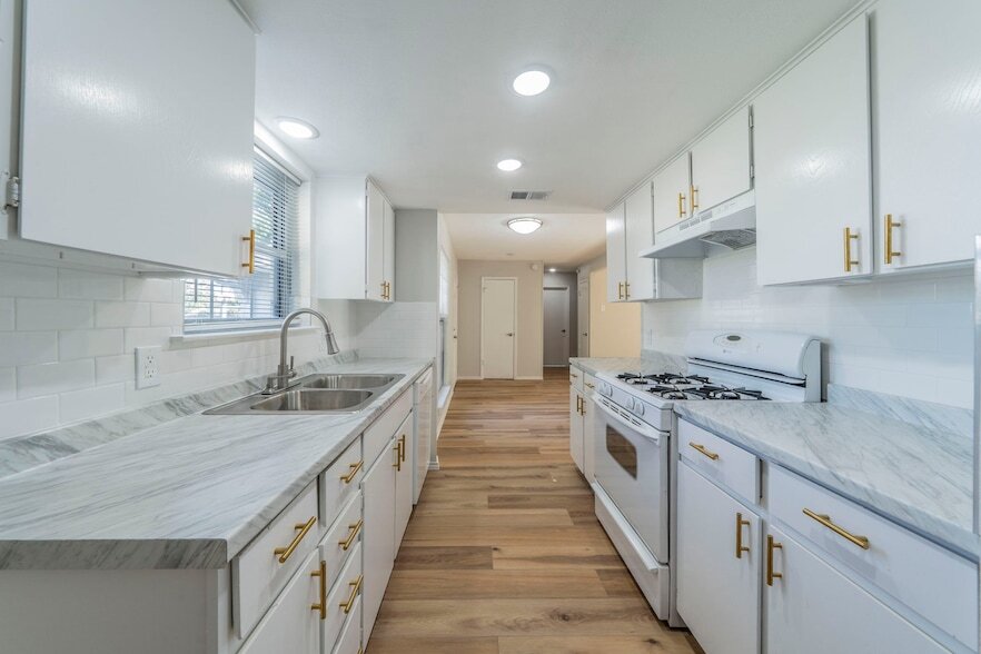 Welcome home to this stunningly refreshed 3 bedroom, 2 bath residence offering comfort, style, and modern living. Recently updated with new interior and exterior paint and brand-new hardwood floors, this home feels fresh, bright, and move-in ready.Step inside to a spacious open floor plan featuring a modernized kitchen with sleek countertops, updated cabinetry, and gas range perfect for cooking and entertaining. Both bathrooms have been beautifully remodeled with contemporary finishes, adding a touch of luxury throughout.Enjoy relaxing or entertaining in the inviting living room or retreat to the private backyard ideal for outdoor dining or play. For your convenience, the home also includes a 2-car garage plus a carport providing additional covered parking.