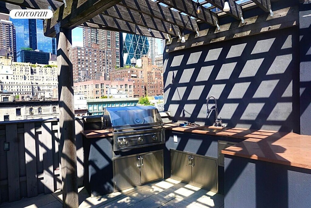 Oasis in Hells Kitchen!A grand triplex with private rooftop Beautifully renovated and perfect for entertaining. Spiral Marble StaircaseFloor to ceiling windows throughoutChef's Kitchen with triple Miele ovensLaundry in unitCentral ACDry bar with wine fridge 3 bedrooms 3.5 bathroomsPrivate rooftop features- dining area, lounge, sunbathing area, wood burning fireplace, shower, and kitchen w/ grillThis unit is located in a very well maintained walk up building with virtual doorman.$20 per applicant to applyDue at lease signing is the first month of rent and security deposit equivalent to one month of rent.