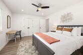 Easily explore everything Bentonville has to offer with this charming home located just steps from Bentonville Square, The Momentary, Crystal Bridges, and the Razorback Greenway, Northwest Arkansas' premier biking, running, and walking path. Perfect for mountain biking enthusiasts, the home is equipped with bike racks and a wash station, making it an ideal base for exploring Bentonville's extensive MTB trails. This inviting home features an open concept living, kitchen, and dining area, perfect for memorable gatherings. The living room offers plush seating and a large Smart TV with all your favorite streaming channels. The fully equipped kitchen is ready for you to prepare delicious meals, while the dining table is perfect for enjoying a board game or a meal. The home includes two private queen bedrooms, each with a desk, vanity, closet, and nearby bathroom. Spend time outside in the private backyard with a grill and outdoor seating, and take advantage of the bike wash station and racks. This pet-friendly home allows dogs, with a maximum of three, for a fee of $90 per dog. Unauthorized pets will incur a fine of $400. Enjoy the convenience of a washer and dryer available for guest use. Bentonville is renowned for its premier mountain bike trails, vibrant restaurants, and fascinating museums. Whether you choose to walk, drive, or bike, you'll have easy access to all the amenities that downtown Bentonville has to offer. Check-in is any time after 3:00 PM. Parties or guest actions that result in disturbances, property damage, extensive extra cleaning, or smoking indoors will incur a fine of $1,000. This is a non-smoking home, and smoking indoors will result in a $1,000 fine plus the cost of any smoke remediation necessary. Unauthorized checkout delays will incur a fine of $100 per hour. Quiet hours are between 10:00 PM and 10:00 AM. [SI]