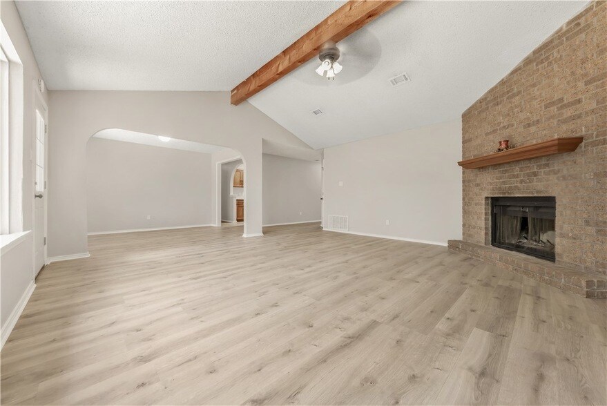 Cute and cozy home close to the A&M shuttle route! This spacious home has a large living room with warm colors, a picture window, fireplace and energy efficient windows. New flooring and paint throughout and bathrooms are completely renovated. New electrical switches, stove/oven, washer and dryer, deck in the backyard, blinds on the windows. Kitchen cabinets and countertops are 1.5 years old. Laminate and tile in kitchen and bathrooms! Updated, energy efficient stainless steel refrigerator and dishwasher in the kitchen, Large bedrooms, large back yard with no back neighbors and beautiful view of the trees. Plus a two car garage. A great find!