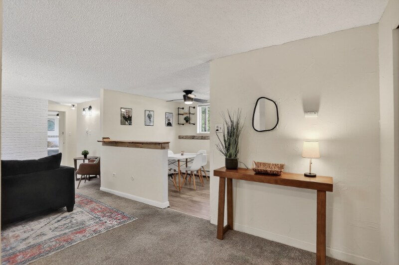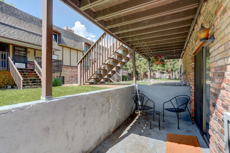 Property Id: 896728 FULLY FURNISHED garden-level retreat! All utilities included, even wifi! Shorter term lease available. This bright, open condo features a spacious living room flowing into the dining area and updated kitchen—perfect for gathering or cooking with ease. The kitchen shines with refreshed counters, backsplash, flooring, bar top, and fully stocked cabinets. Relax in the cozy living area with Smart TV, or step through sliding doors to your private patio for morning coffee. The bedroom offers a brand-new queen bed with fresh linens, blackout curtains, and smart storage. Unwind in the full-size tub, with new towels and essentials stocked in the linen closet. Community laundry is just steps away, and the quiet complex boasts mature trees, grassy spaces, and a seasonal pool. Reserved carport parking makes winter easy, extra street parking for guests. Thoughtful touches throughout create a warm home designed for comfort and relaxation. Great location close to coffee shops, light rail & more!