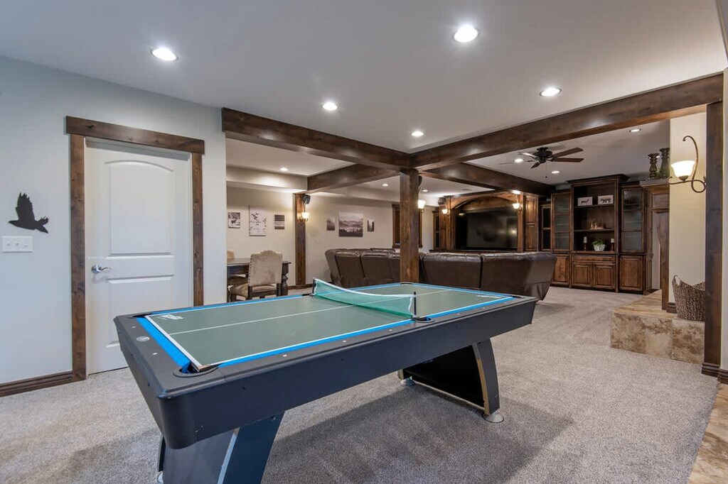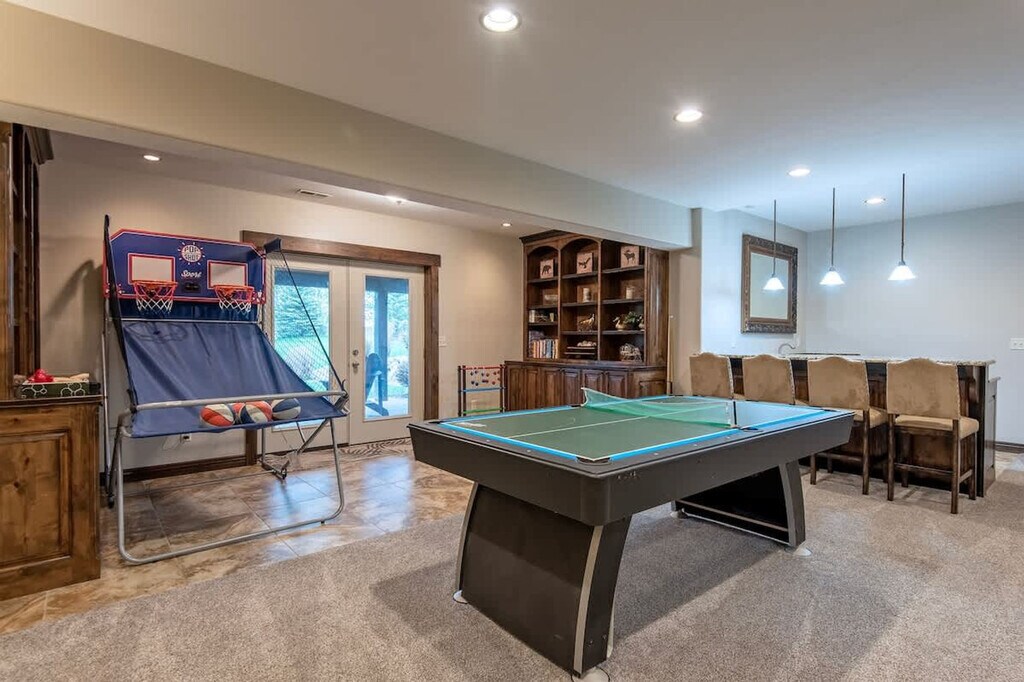 Discover a vacation destination as adventurous and enjoyable as the surrounding Teton Mountain Range. This luxurious 5,000 sq. ft. chalet, nestled just north of Tetonia, ID, is more than just a basecamp for exploring Grand Teton and Yellowstone National Parks. It's a haven for relaxation, fun, and creating lifelong memories with your loved ones. This home comfortably accommodates up to 13 guests in 5 large bedrooms, complemented by 4 full bathrooms. Ideal for families and groups, it offers everything from high-speed internet and an office space for those needing to stay connected, to a dedicated theater area for movie nights or cheering on your favorite team. The gourmet kitchen is perfect for family breakfasts, and the enclosed garage provides ample space for your vehicles. Enjoy indoor and outdoor entertainment with yard games, an indoor game room, and an outdoor fire pit with the majestic Tetons as your backdrop. A brand new hot tub on the back deck allows you to soak in stunning views of the Tetons after a day of adventure. Traveling with small children or babies? A pack 'n' play, stroller, high chair, and baby bottles are available for rent. Please inquire about your specific needs. With easy access to Highway 32, a short 16-minute drive brings you to Driggs, the charming heart of Teton Valley. Local Driggs attractions include numerous delicious restaurants, snowmobile tours, ski, snowshoe, and mountain bike rentals, canoe and kayak rentals, pickleball courts, yoga studios, fitness centers, cute shops, fishing tours, hot air ballooning, hiking trails, and more. The nearby town of Tetonia is just 5 minutes away, featuring Tetonia Grinders Coffee, a local pub, and the Church of Jesus Christ of Latter-day Saints. Other nearby attractions include Rexburg Rapids, St. Anthony Sand Dunes, ice skating in Victor, and the Green Canyon Hot Springs. Distances to national parks include Yellowstone - West Entrance (1 hr 29 min), Yellowstone - South Entrance (2 hr 17 min), and Grand Teton (1 hr 10 min). You can also access hiking and outdoor activities in the Tetons here in Teton Valley, affectionately called the quiet side of the Tetons. We have a no-pets policy due to severe allergies and no events are allowed, including parties, large gatherings, and weddings. For your safety, security cameras are at the home's entryways. Quiet hours are from 9 pm to 8 am, and no smoking or vaping is allowed in the home or on the decks. An additional charge will be applied if any smoking evidence is found on the property. Please turn all exterior lights off at night, as the dark skies are part of the beauty of our valley. A maximum of four licensed vehicles is allowed in the driveway and garages. No riding snow machines, dirt bikes, or ATVs in the subdivision or at the rental property. Please do not burn candles or incense in the home and no fireworks are allowed on the premises. Keep all main entry doors locked when not occupied. Fines will apply for violations, including leaving garbage in the house or litter on the grounds, failure to disclose or clean up after pets, smoking in the house or garage, failure to follow house rules and respect posted signs, failure to follow check-out procedure, mistreatment of the hot tub, or violations of local laws. A minimum $500 fine applies for smoking/vaping/marijuana in the house or garage, violation of house rules, posted signs, laws, or failure to vacate at check-out time. Includes high-speed internet and an office space for those needing to stay connected.