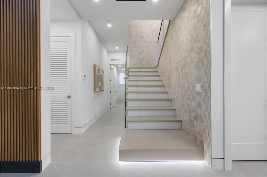 Brand New 2025 Construction Home Experience tropical modern luxury in this stunning all-concrete residence built for strength and durability. Enter into soaring double ceilings, a sleek glass staircase, stonelike accent walls, and lush greenery blending indoor-outdoor living. Upstairs offers 3 bedrooms with ensuite baths, 2 are primaries each with 2 walk-in closets and a private balcony plus an open loft for added living space. A 4th bedroom with ensuite bath and 1/2 bath are on the 1st floor. Open-concept living, a chef s kitchen with a massive walk-in pantry, 2 laundry rooms-the lower room can be used as a pet room, small office or storage. Relax in the saltwater heated pool/spa. Rare oversized 85-ft driveway fits 8 cars. 5 mins to Downtown/Las Olas and 10 mins to airport. Great Location