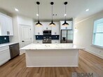 Charming Garden Patio home offering low-maintenance living with stylish, modern finishes throughout! This beautifully designed two-bedroom, two-bath home features no carpet and luxury vinyl flooring for easy upkeep and durability. The open kitchen is both functional and attractive with quartz countertops, stainless steel appliances, subway tile backsplash, under-mount sink, corner walk-in pantry, oversized island for seating as well. It includes refrigerator, washer, and dryer. The spacious second bedroom offers a large walk-in closet and ceiling fan, while the hall bath is appointed with quartz countertops and a tub/shower combination. The primary suite is generously sized with a large walk-in closet and a beautifully finished en-suite bath featuring framed mirrors, quartz countertops, and an oversized soaking tub/shower combo with tile surround. The laundry room is exceptionally well-equipped with abundant upper and lower cabinetry, quartz countertops, tile flooring, and excellent workspace. Outside, enjoy a nicely sized private patio and partially fenced yard perfect for relaxing or entertaining. Additional highlights include a single-car garage plus extra parking space. This move-in ready home combines comfort, storage, and elegant finishes in a desirable garden home setting.