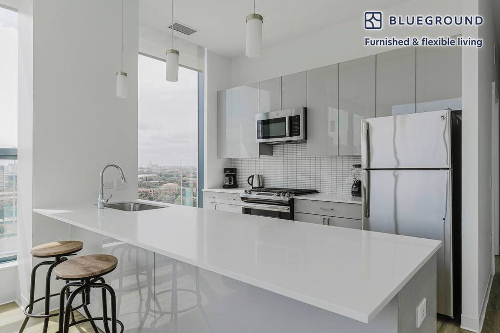 Show up and start living from day one in Chicago with this beautiful two bedroom Blueground apartment. You’ll love coming home to this thoughtfully furnished, beautifully designed, and fully equipped Greektown home with stunning views over the city. (ID #CHI561) The advertised rate of $2,380/month is the lowest available price, based on a 1 month(s) and 17 day(s) stay with a move-in date of December 15, 2025. If you’re looking for a 1-year stay, the rate is $3,680/month. Rates vary depending on the duration of stay, season, and other parameters. For exact pricing and additional pricing components, please visit our website and enter your desired move-in and move-out dates. The rate is applicable when billed upfront; it can be higher if billed in multiple payments. Brokers are welcome to reach out. Were you looking for an unfurnished lease? Try Blueground instead and upgrade from unfurnished to furnished living: - Furnished at rates comparable to unfurnished - No setup or furniture costs - save thousands - Move-in ready - save time, just bring your suitcase Designed with you in mind Thoughtfully designed with bespoke finishes, modern furnishings, and a fully equipped kitchen, you’ll enjoy that “I’m home” feeling with this Blueground apartment. Whether you’re lounging in your beautiful living room streaming the latest and greatest entertainment on the smart TV or premium wireless speaker, or getting some well-earned rest on the superior quality mattress with luxury linens, you’ll fall in love with everything this Greektown apartment has to offer. This apartment also offers in-apartment laundry. Sleeping arrangements King Bed, 70.8in/180cm Queen Bed, 63in/160cm Amenities Building amenities unique to this two bedroom apartment include an on-site: - Doorman - Dryer - Elevator - Swimming pool - Washing machine - Lounge - Pets allowed - Rooftop BBQ Arrival and ongoing support The entire apartment is yours to enjoy! Throughout your stay, you’ll have access to our Client Experience team through the Blueground App. You can schedule additional cleanings, submit maintenance requests, and view our neighborhood recommendations with just a few taps. We’ll share all details upon confirmation of your stay. Other things to note Building amenities may have an extra cost. This Blueground apartment has flexible lease options, allowing you to book it for one month, a year, or more. Pets are welcome, though weight limits and breed restrictions apply and may incur fees. We take great pride in ensuring every photo displayed is shot in our own units with our actual furnishings. That said, we regularly refresh our decor and furniture arrangement, which may differ from what’s pictured. Also note - This apartment's central location means it can be noisy at times - This apartment is located on a busy street [SI]