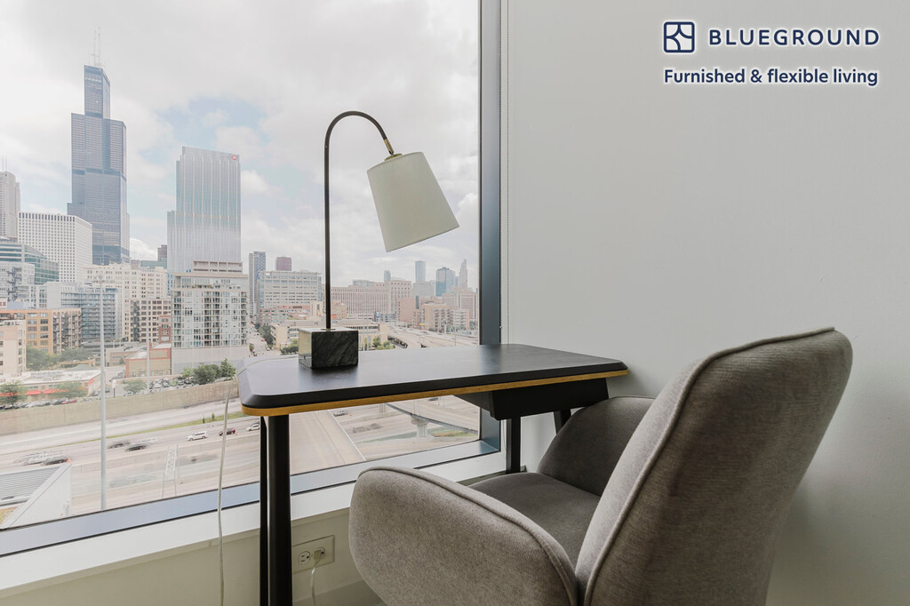 Show up and start living from day one in Chicago with this pretty two bedroom Blueground apartment. You’ll love coming home to this thoughtfully furnished, beautifully designed, and fully equipped Greektown home with stunning views over the city. (ID #CHI540) The advertised rate of $3,730/month is the lowest available price, based on a 12 month(s) stay with a move-in date of May 10, 2026. Rates vary depending on the duration of stay, season, and other parameters. For exact pricing and additional pricing components, please visit our website and enter your desired move-in and move-out dates. The rate is applicable when billed upfront; it can be higher if billed in multiple payments. Brokers are welcome to reach out. Were you looking for an unfurnished lease? Try Blueground instead and upgrade from unfurnished to furnished living: - Furnished at rates comparable to unfurnished - No setup or furniture costs - save thousands - Move-in ready - save time, just bring your suitcase Designed with you in mind As with any Blueground apartment, you’ll find a thoughtfully designed space complete with beautiful furniture and a fully equipped kitchen in this two bedroom property. And, thanks to our superior quality mattresses, luxury linens, and towels, you can relax knowing you’ll always feel comfortably at home. When you’re ready for some fun, you can take in the Chicago vibes or bring the entertainment to you with the premium wireless speaker or smart TV. This apartment also offers in-apartment laundry. Sleeping arrangements King Bed, 70.8in/180cm Queen Bed, 63in/160cm Amenities Building amenities unique to this two bedroom apartment include an on-site: - Doorman - Dryer - Elevator - Swimming pool - Washing machine - Lounge - Pets allowed - Rooftop BBQ Arrival and ongoing support The entire apartment is yours to enjoy! Throughout your stay, you’ll have access to our Client Experience team through the Blueground App. You can schedule additional cleanings, submit maintenance requests, and view our neighborhood recommendations with just a few taps. We’ll share all details upon confirmation of your stay. Other things to note Building amenities may have an extra cost. This Blueground apartment has flexible lease options, allowing you to book it for one month, a year, or more. Pets are welcome, though weight limits and breed restrictions apply and may incur fees. We take great pride in ensuring every photo displayed is shot in our own units with our actual furnishings. That said, we regularly refresh our decor and furniture arrangement, which may differ from what’s pictured. Also note - This apartment's central location means it can be noisy at times - This apartment is located on a busy street - This is a guarded building equipped with a doorman/concierge at all times [SI]