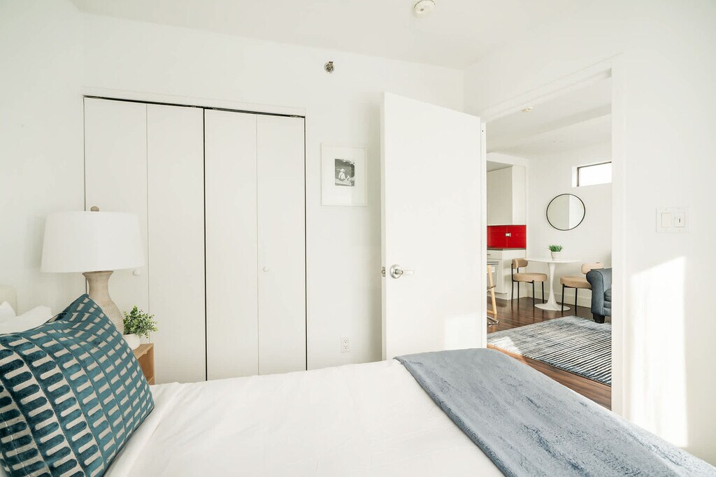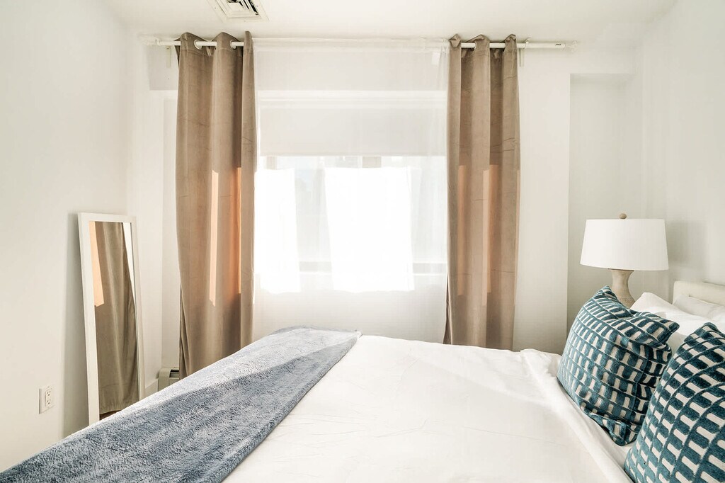 This beautifully renovated, fully furnished 1-bedroom apartment in the heart of Hell’s Kitchen offers a stylish and comfortable living space with modern furniture and a thoughtfully designed layout. Featuring a fully equipped kitchen, in-unit washer and dryer, fresh towels, heating, and air conditioning, it ensures a seamless stay. Enjoy beautiful city views through large windows. Located in a safe and secure neighborhood, the elevator building with only two apartments per floor offers privacy and peace of mind with smart lock access. Move in and feel right at home! Experience modern city living in this beautifully renovated, fully furnished 1-bedroom apartment located in the heart of Hell’s Kitchen (Midtown West). Designed with sleek, contemporary furniture, this stylish unit features a spacious layout. Enjoy breathtaking city views through large windows or step onto the Juliet balcony for a breath of fresh air. The apartment boasts a fully equipped kitchen with all essential appliances, cookware, and tableware. Washer and dryer in unit, 43' smart TV, and high-speed Wi-Fi make it perfect for both short- and long-term stays. Additional comforts include fresh towels, heating, air conditioning, and an abundance of natural light. Set in a well-maintained elevator building with only two apartments per floor, you’ll enjoy privacy and tranquility while being in the heart of one of NYC’s most exciting neighborhoods. Located in the heart of Hell's Kitchen, this bustling neighborhood in Midtown Manhattan is known for its lively atmosphere, diverse food scene, and proximity to some of the city's top attractions. This area is a hub for theater and entertainment, with numerous Broadway theaters, comedy clubs, and music venues within walking distance. The nearby Hudson River Park provides a beautiful waterfront escape for running, biking, and outdoor activities, and the High Line elevated park is just a short walk away. The neighborhood is also known for its excellent dining options, with everything from casual cafes and bars to high-end restaurants serving cuisine from around the world. Additionally, this area is conveniently located near public transportation, making it easy to get anywhere in the city. Overall, Hell's Kitchen is a vibrant and exciting area with something for everyone, and it's the perfect place to experience the best of New York City. No smoking and no pets are allowed.